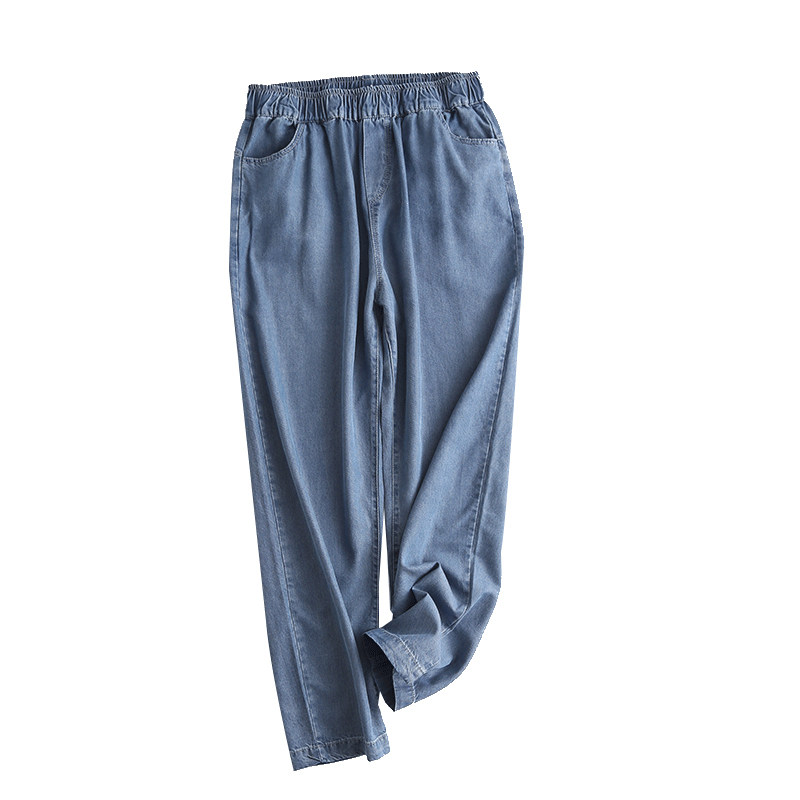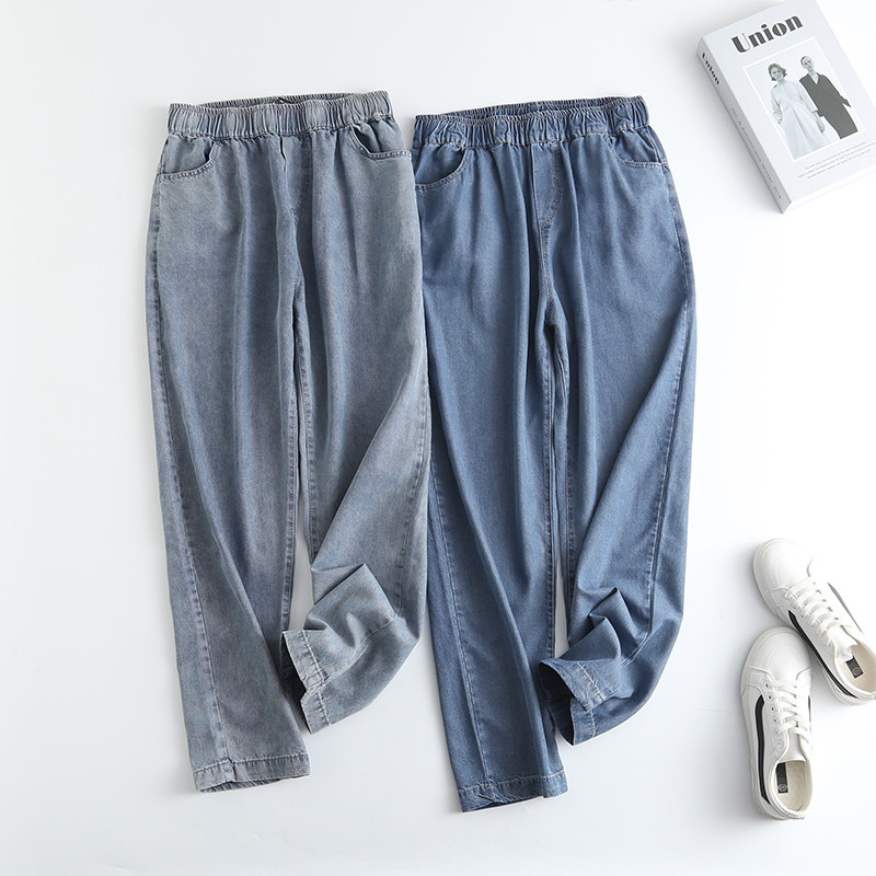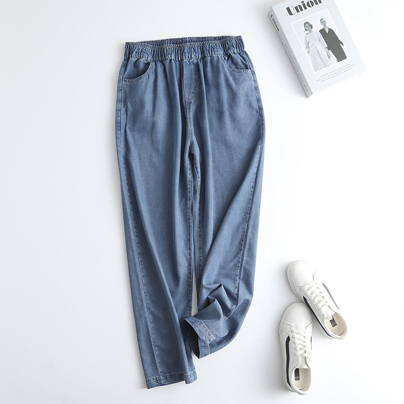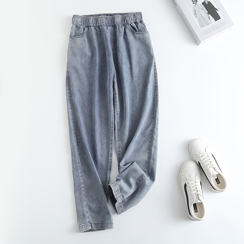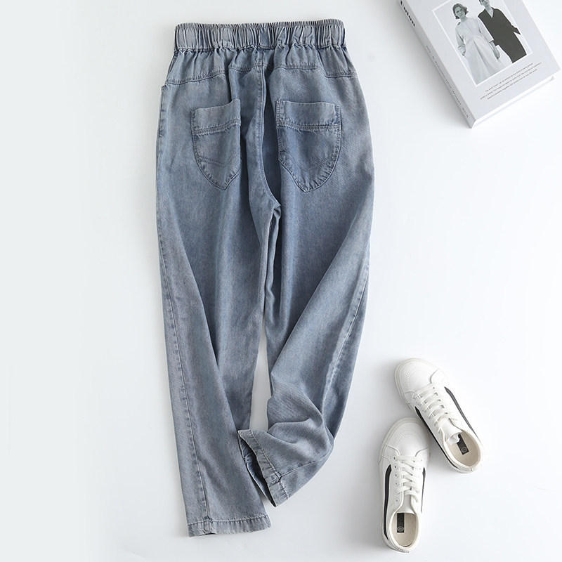 Джинсы-шаровары, тонкие летние приталенные шелковые штаны, эластичная талия, высокая талия