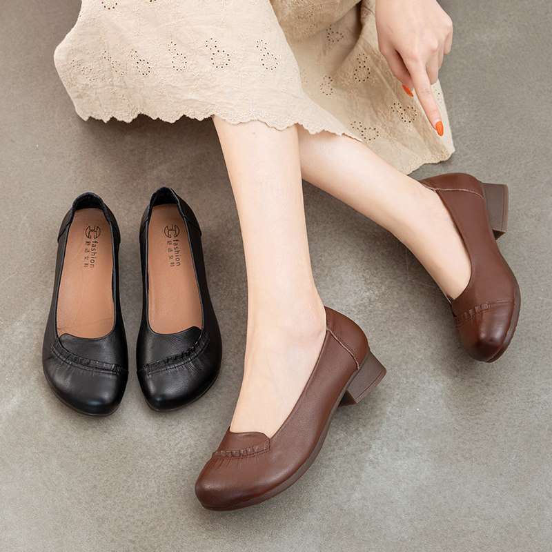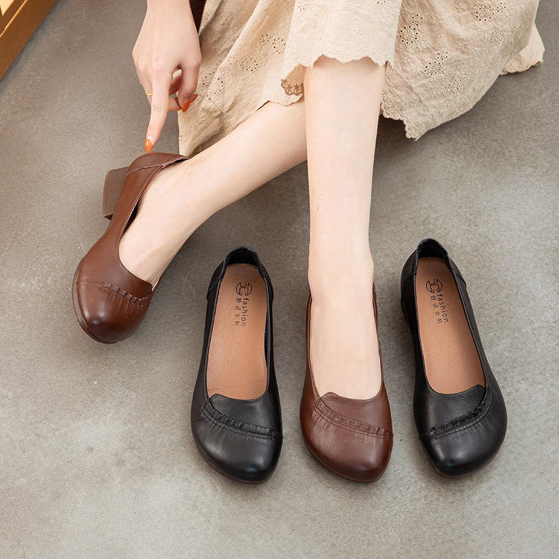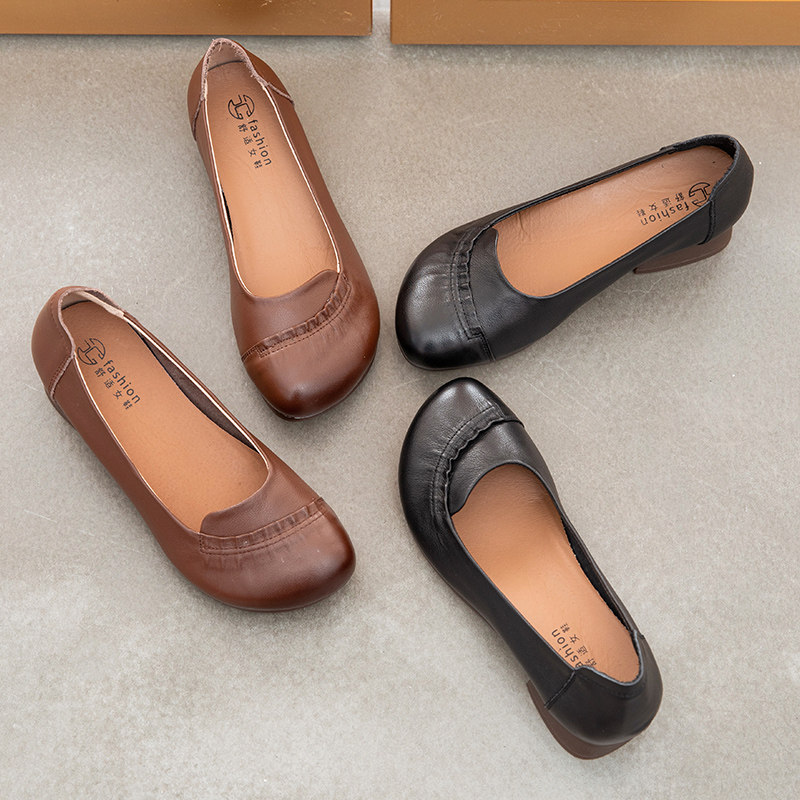 Весна и осенняя матери обувь мягкие подошвы из кожаной обуви Термин одиночная одиночная обувь грубая нуждающаяся мягкая лапша этническая туфли
