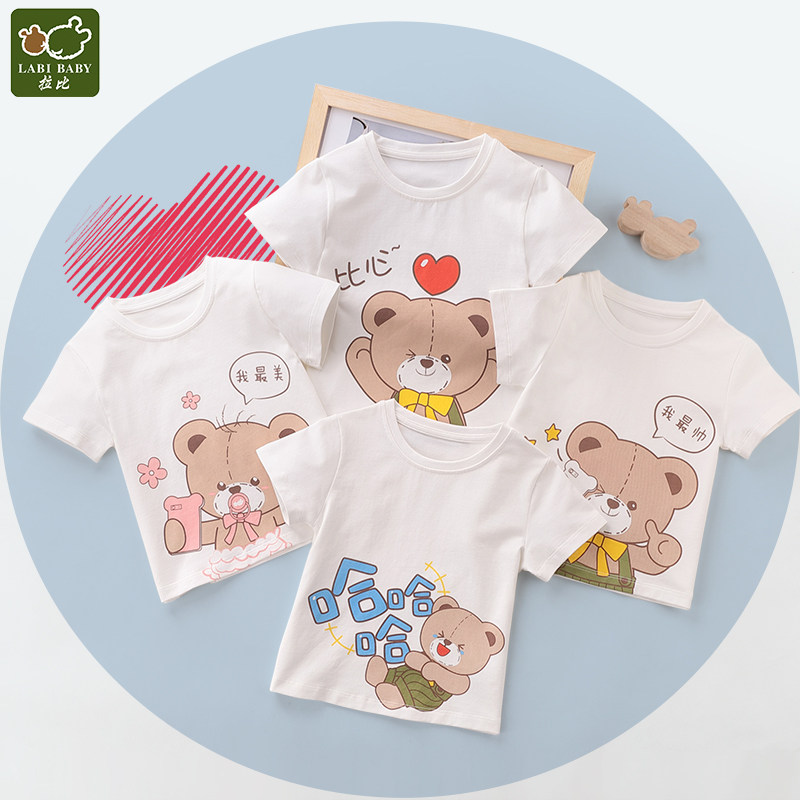 Летняя детская мультяшная футболка для раннего возраста подходит для мужчин и женщин для девочек с круглым воротником, детская одежда, короткий рукав
