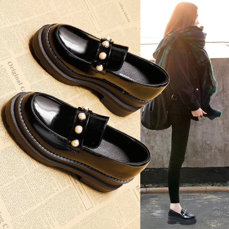 Модные брендовые модные универсальные женские туфли на платформе на толстой подошве, весна 2023 года, новый стиль, маленькие кожаные туфли из натуральной кожи, британские интернет-знаменитости, жемчужные туфли