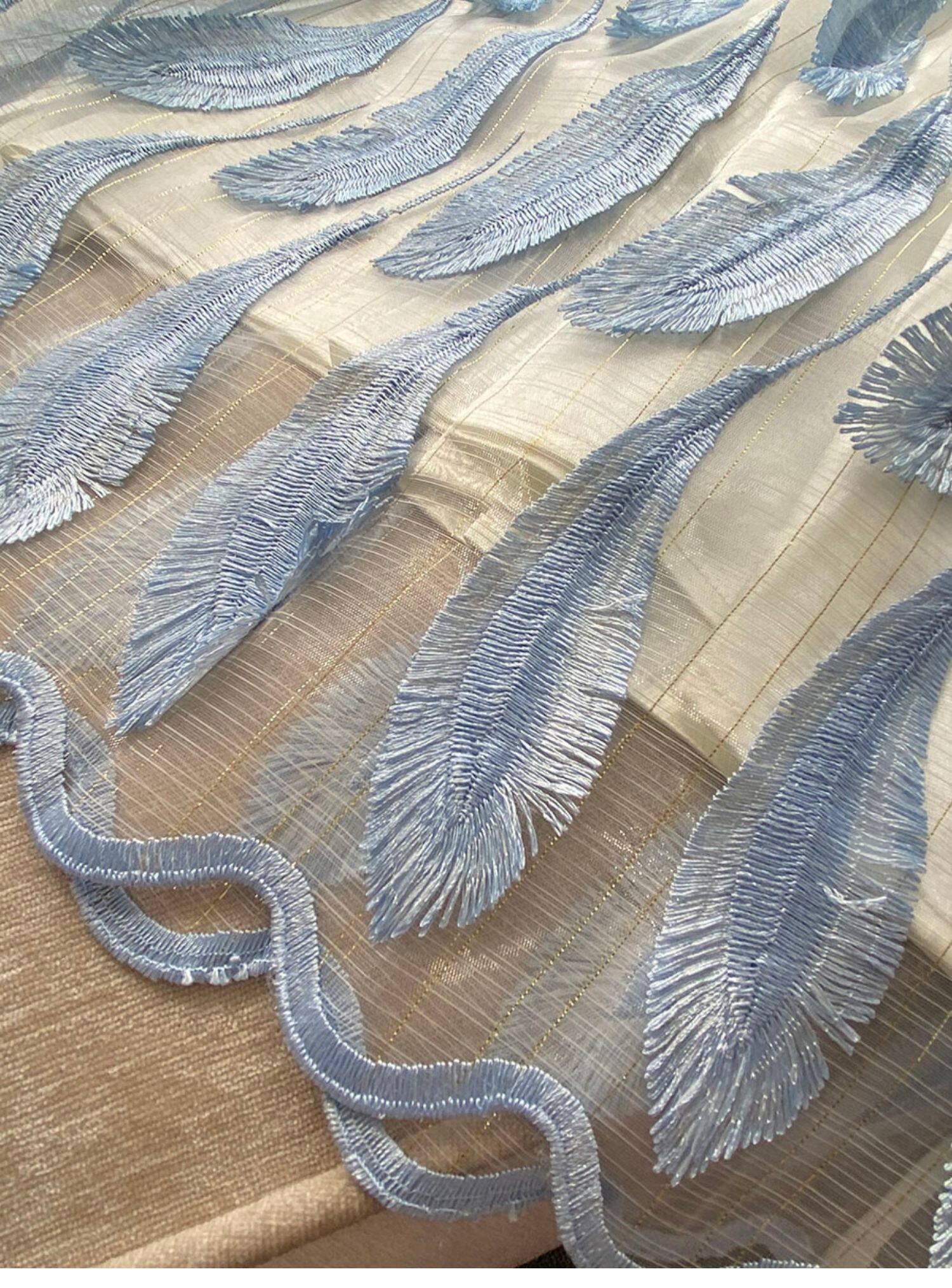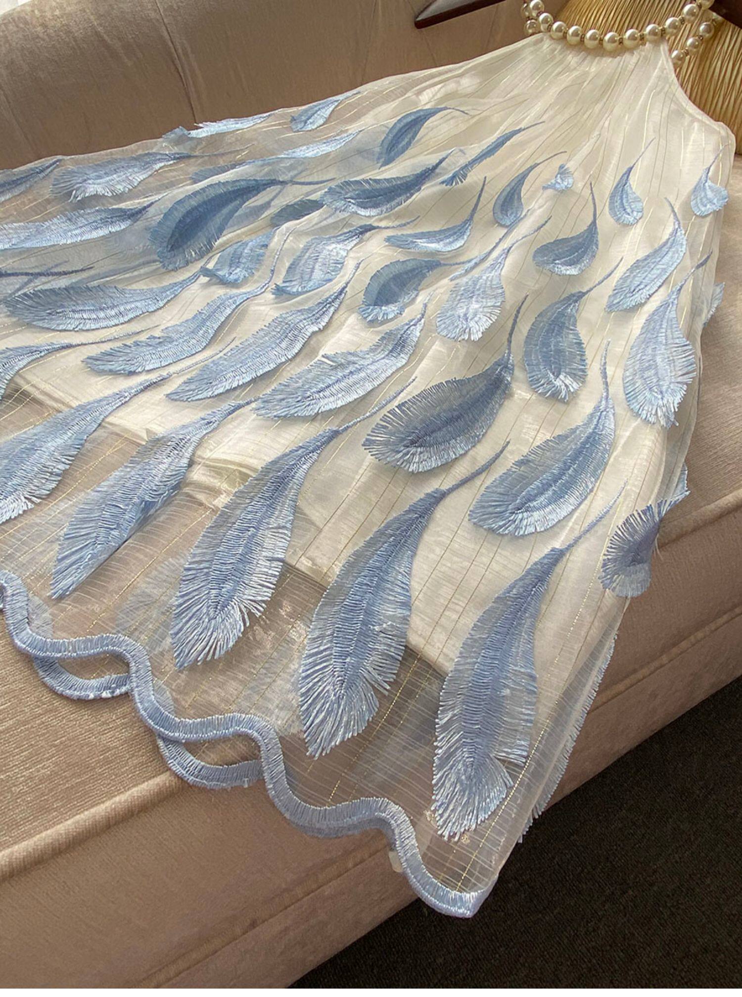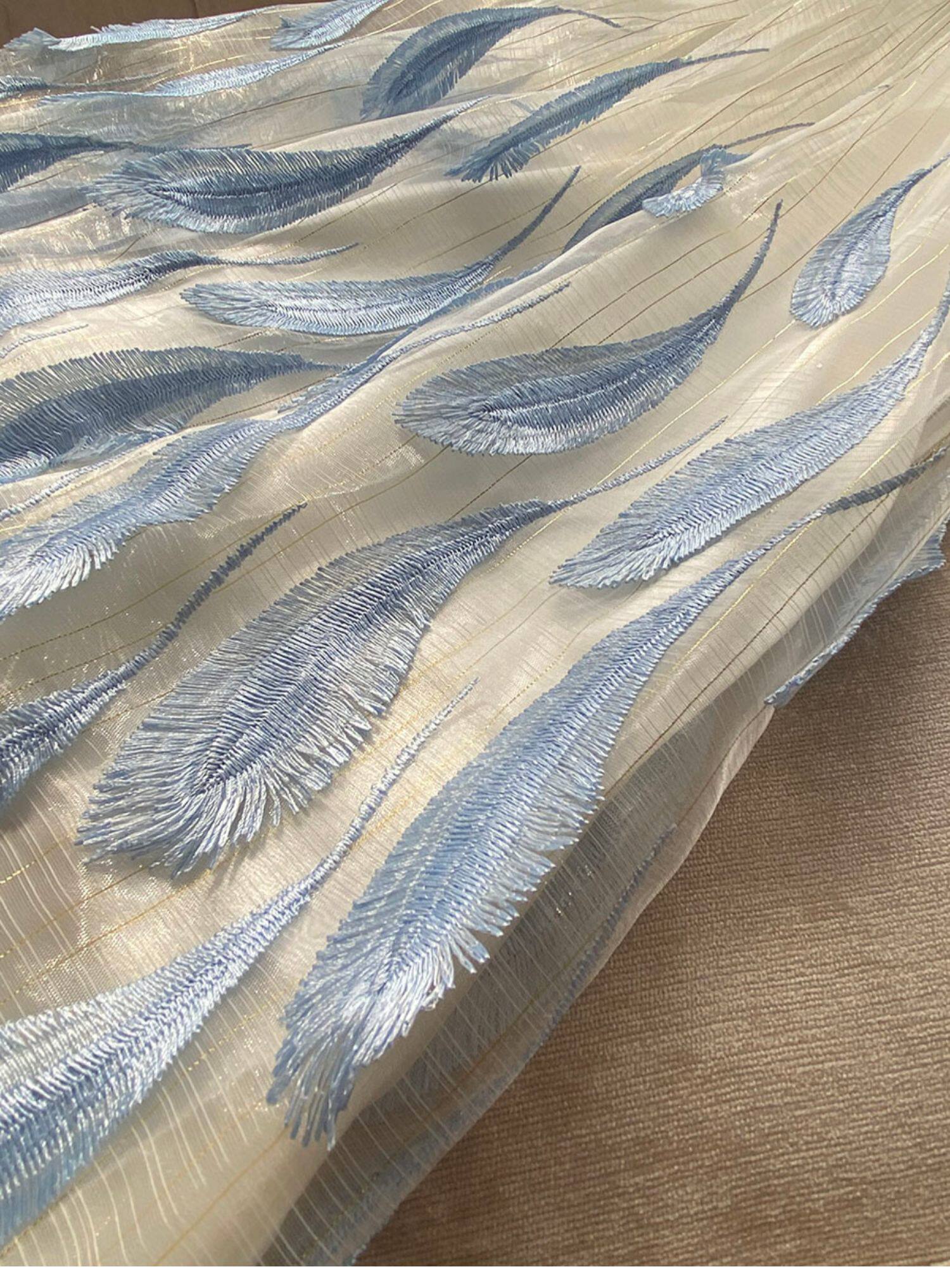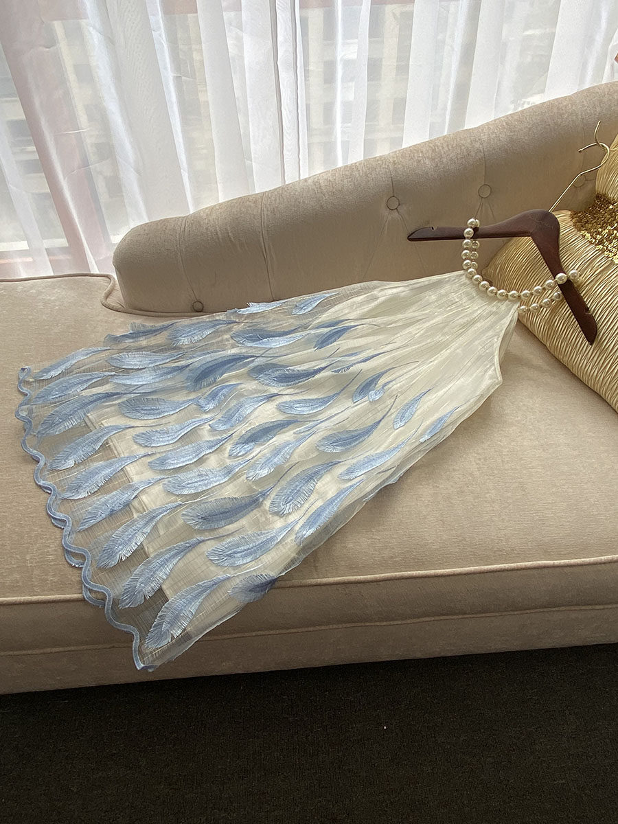 Свежее милое летнее синее платье без рукавов, набивка пером, с вышивкой, изысканный стиль