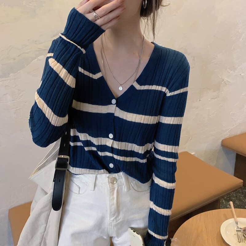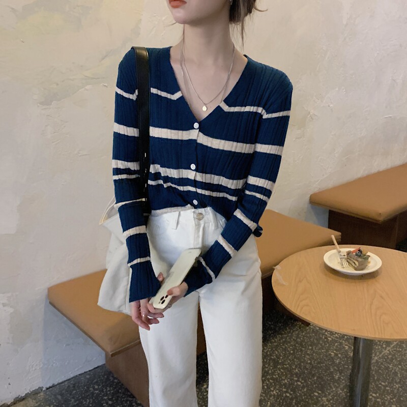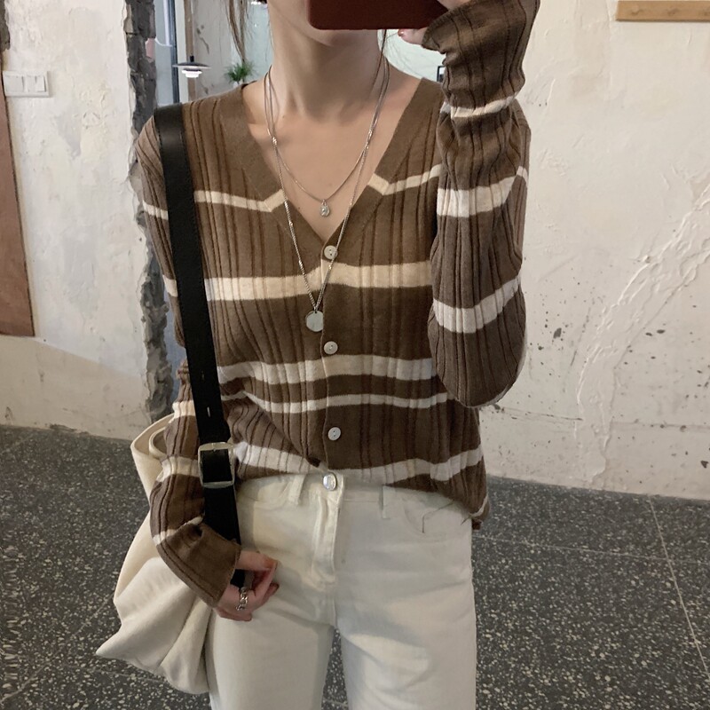 Осенний трикотажный свитер, лонгслив, кардиган, V-образный вырез, в корейском стиле, в западном стиле, свободный крой