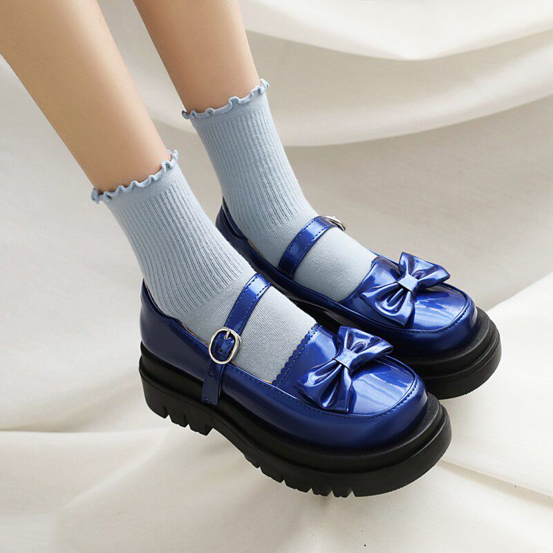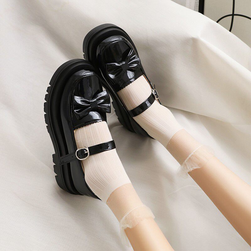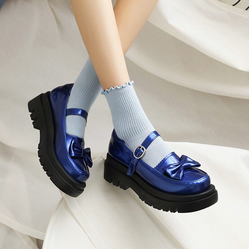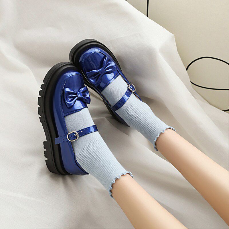 2021 Новая одиночная обувь Lolita Shoes retro Lolita Butterfly Узлы круглая голова толстая дно большая женская одиночная обувь 4041