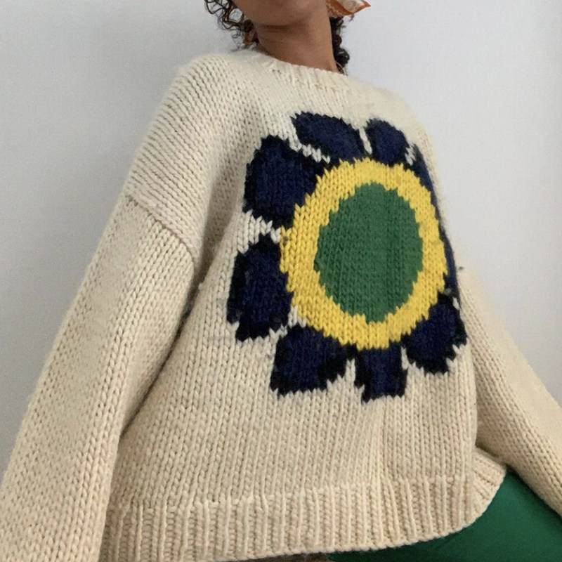 Tide, ретро бежевый трикотажный демисезонный свитер с круглым воротником, 2021 года, в американском стиле