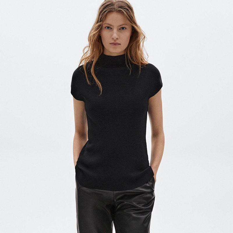 Трикотажная приятная телу летняя приталенная черная футболка