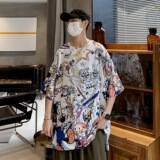 Летняя японская мультяшная трендовая футболка с коротким рукавом, оверсайз, в корейском стиле