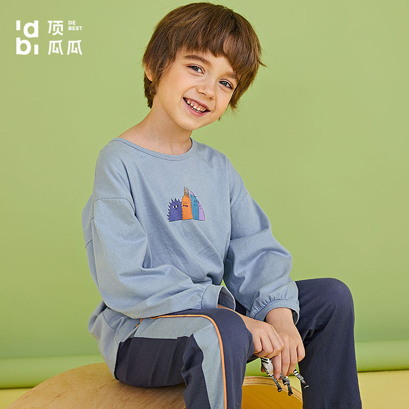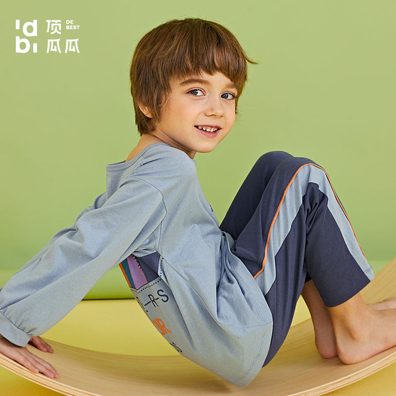 顶瓜瓜 Лонгслив, штаны для мальчиков, детская хлопковая мультяшная тонкая летняя пижама