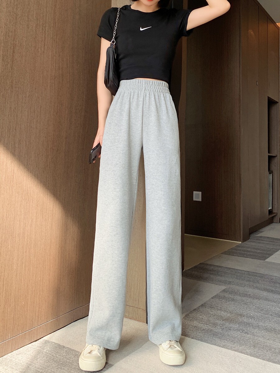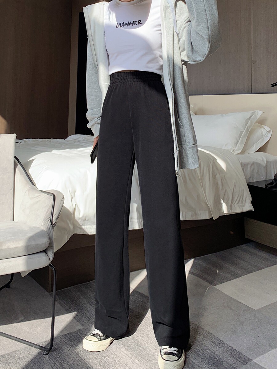 Спортивные тонкие штаны, высокая талия, свободный прямой крой