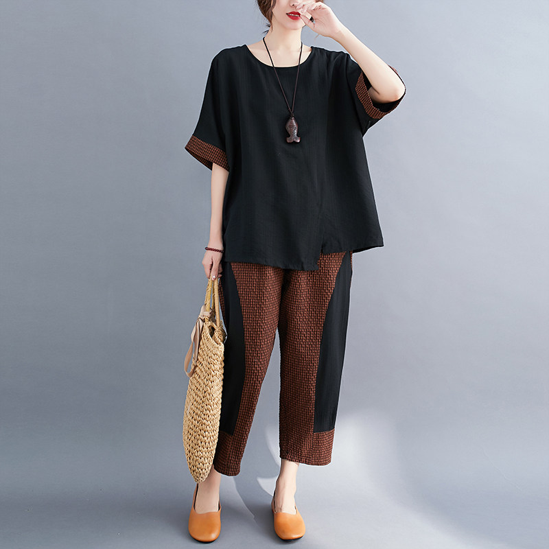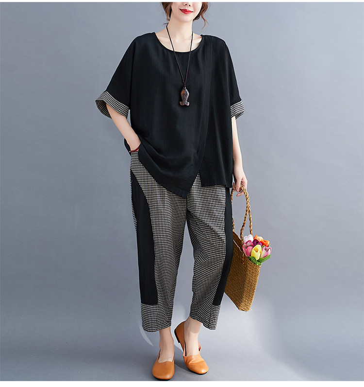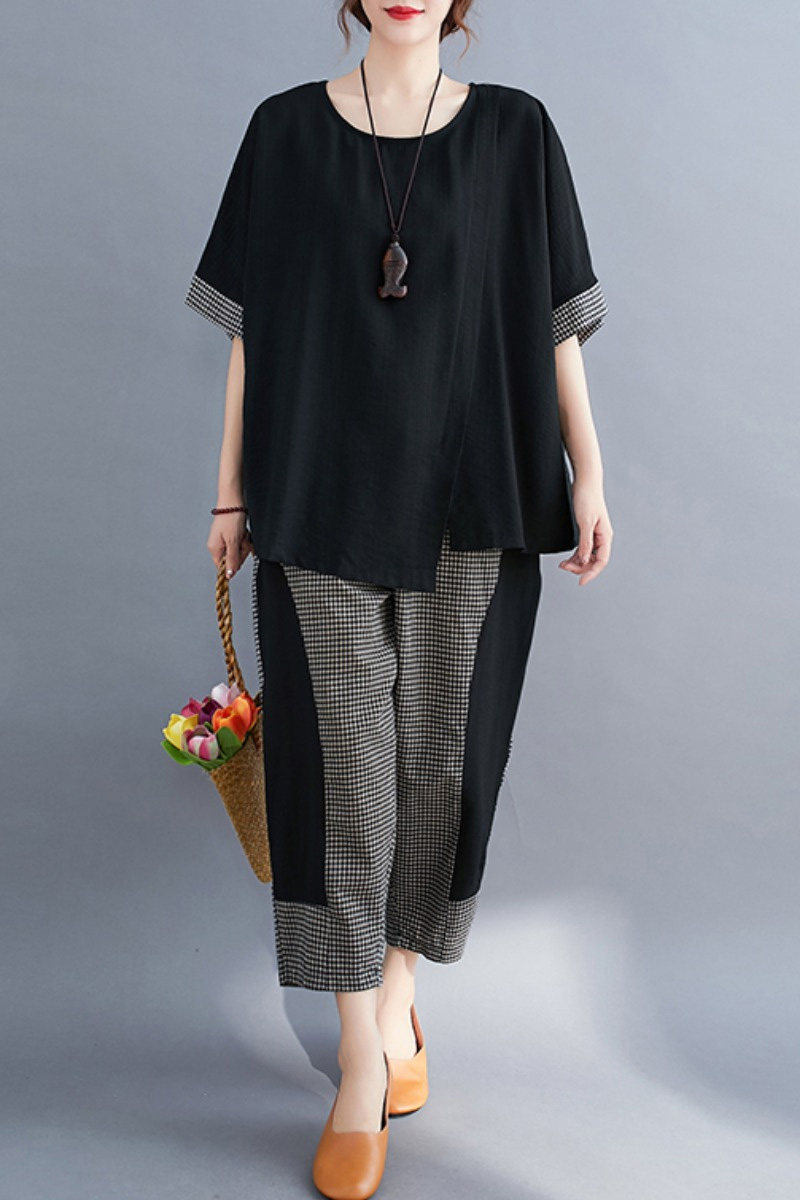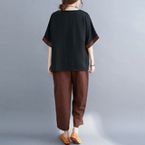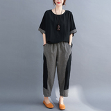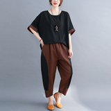 Комплект, большой размер, подходит для полных девушек, свободный крой, из хлопка и льна