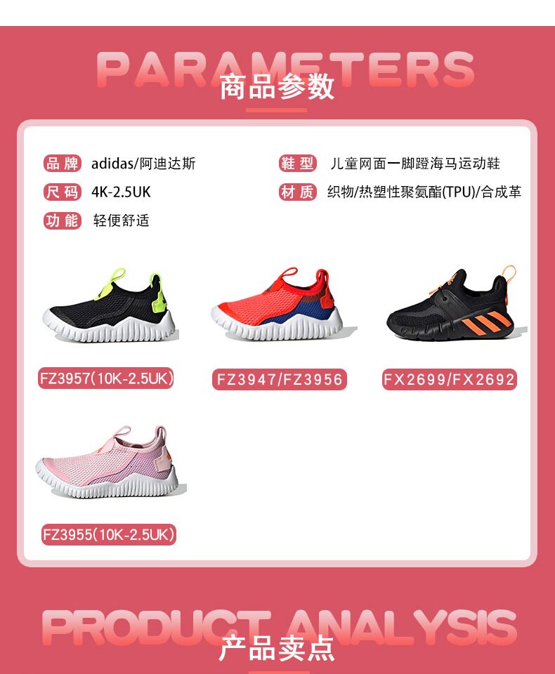 Adidas Children's Shoes Boys 2021 Летняя новая сетка - дышащие на одну ногу кроссовки для детских гиппокампов FZ3957