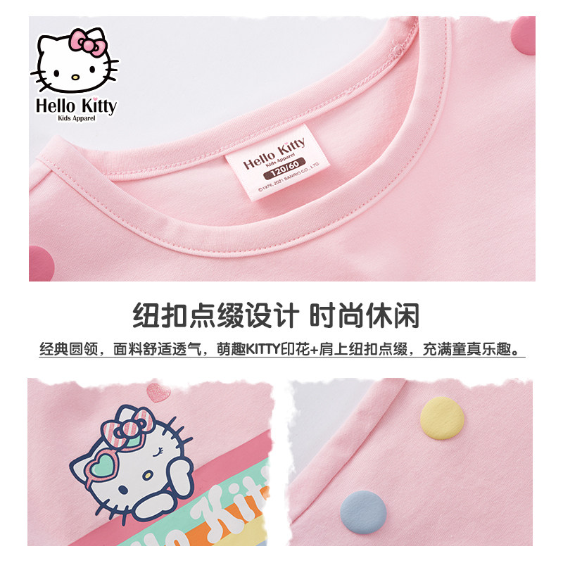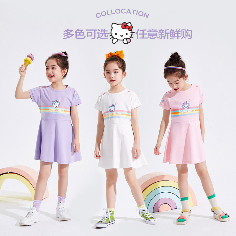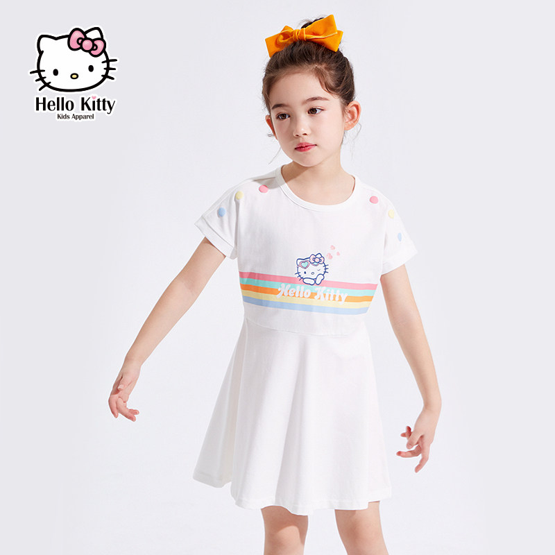 Hello Kitty, трикотажная летняя одежда, платье, юбка, детская одежда, сезон 2021, в западном стиле, подходит для подростков, короткий рукав