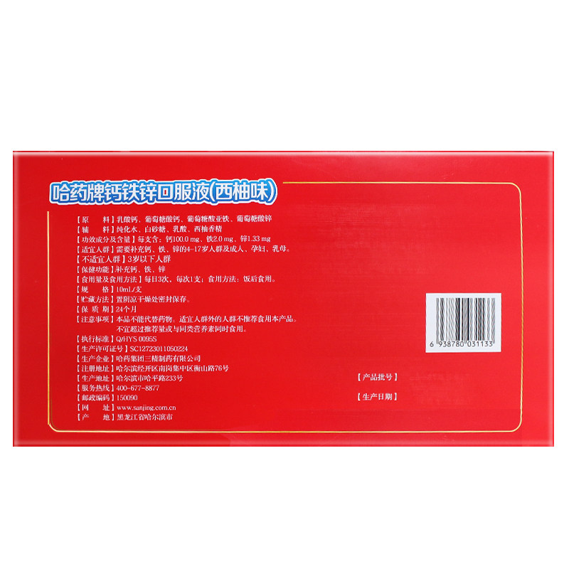 哈药 Бренд кальций железо цинк пероральный раствор 10 мл*10 (оригинал) поддерживает кальциевые утюжные дети с добавлением цинка и железо.