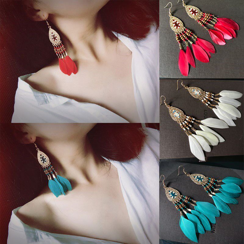 Красные этнические серьги с кисточками, популярно в интернете, стиль бохо