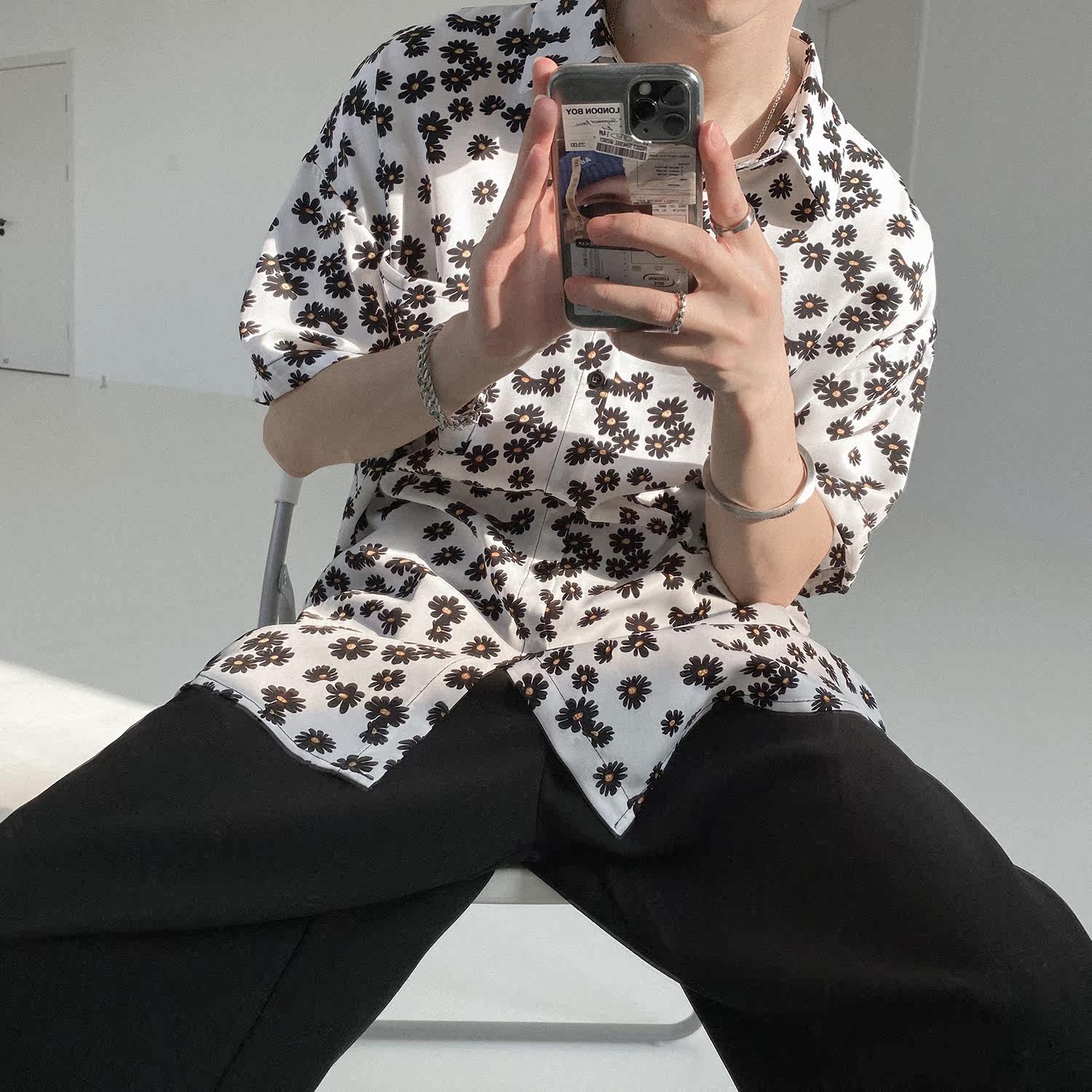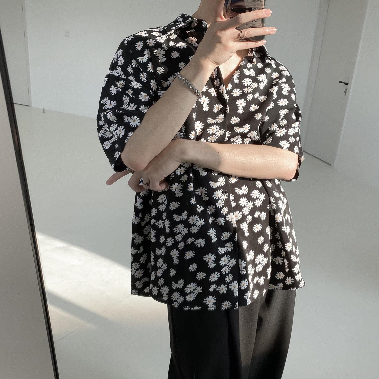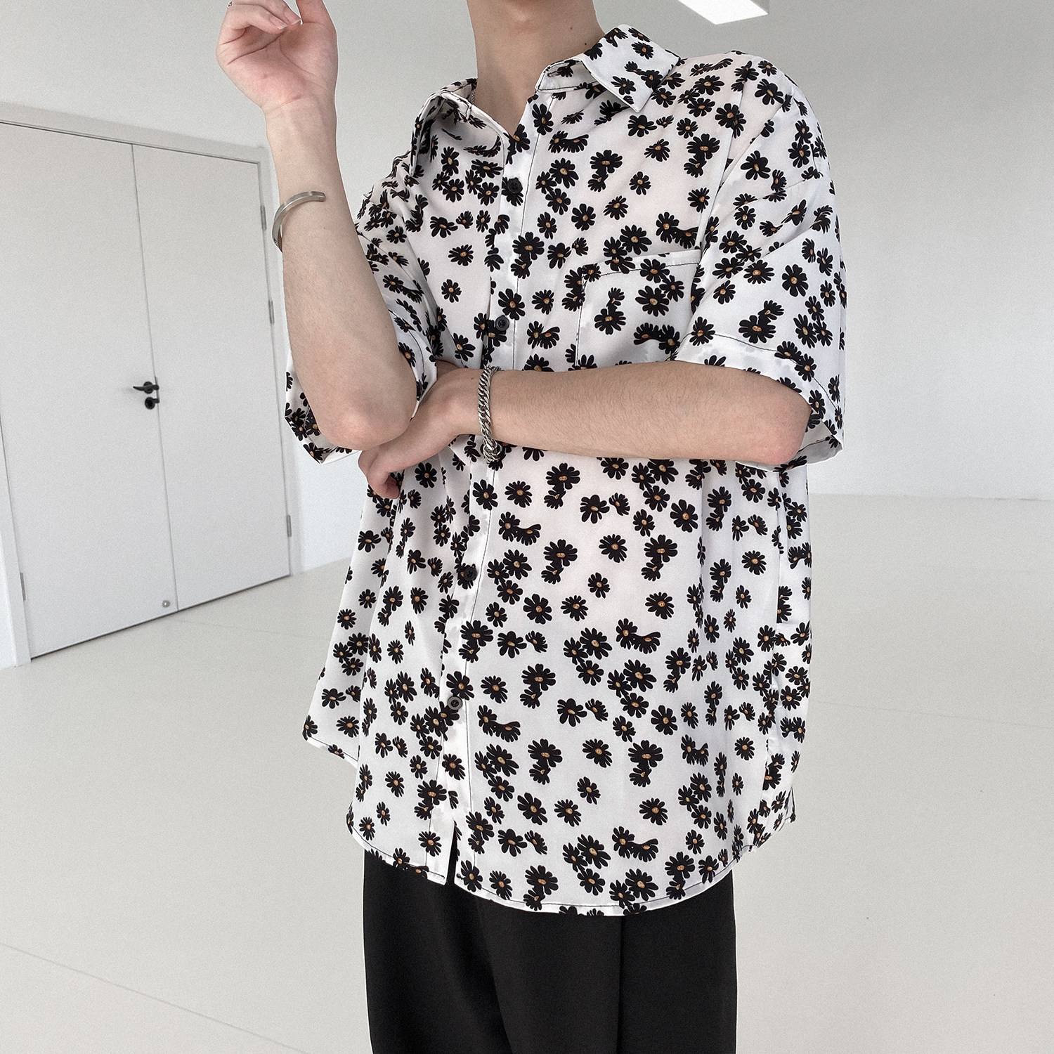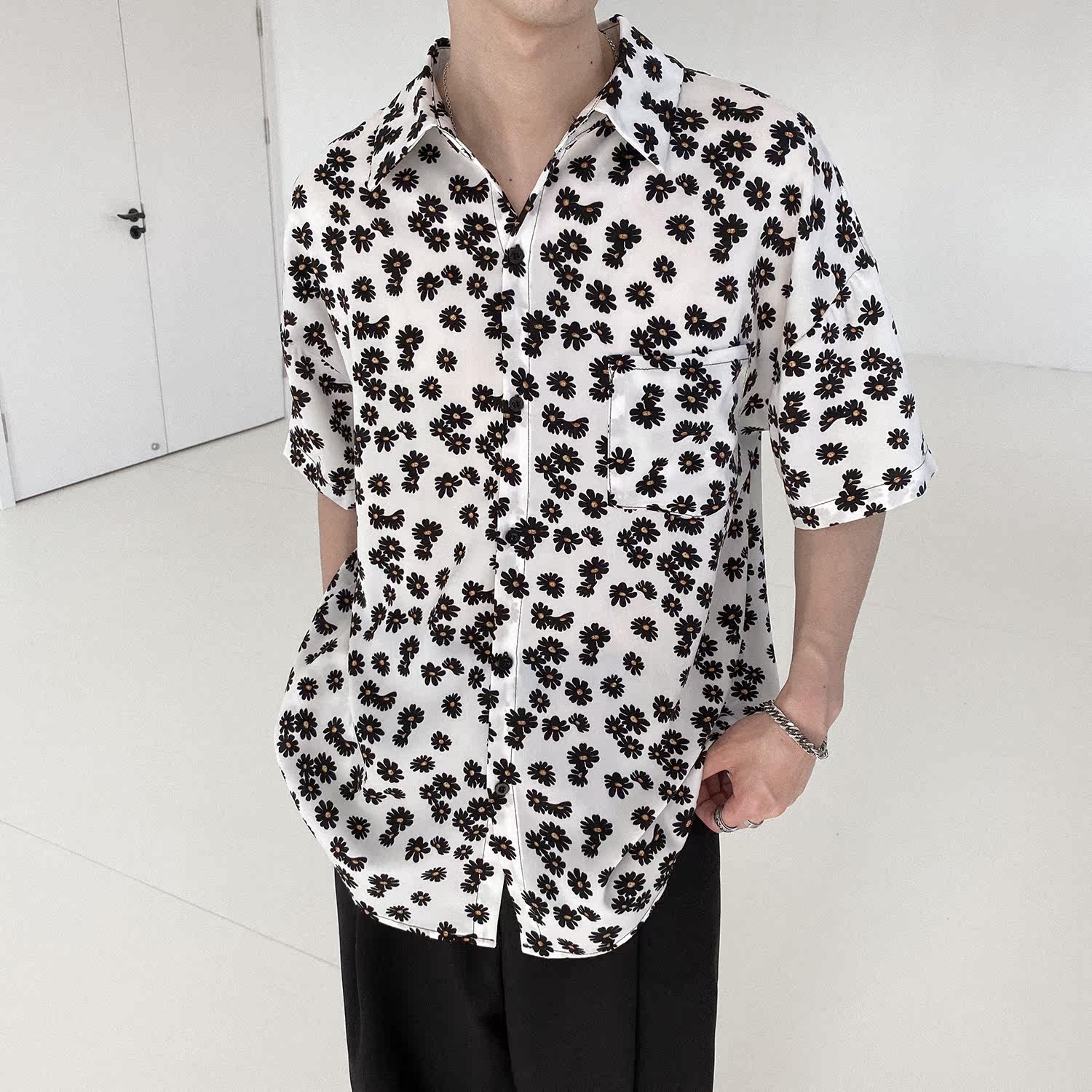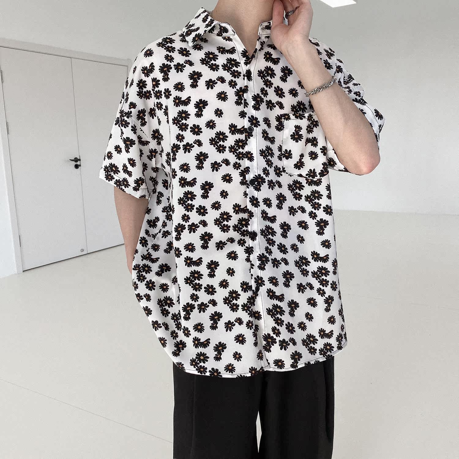 Летняя брендовая рубашка, свободный крой, цветочный принт