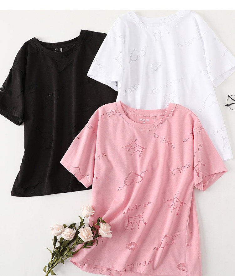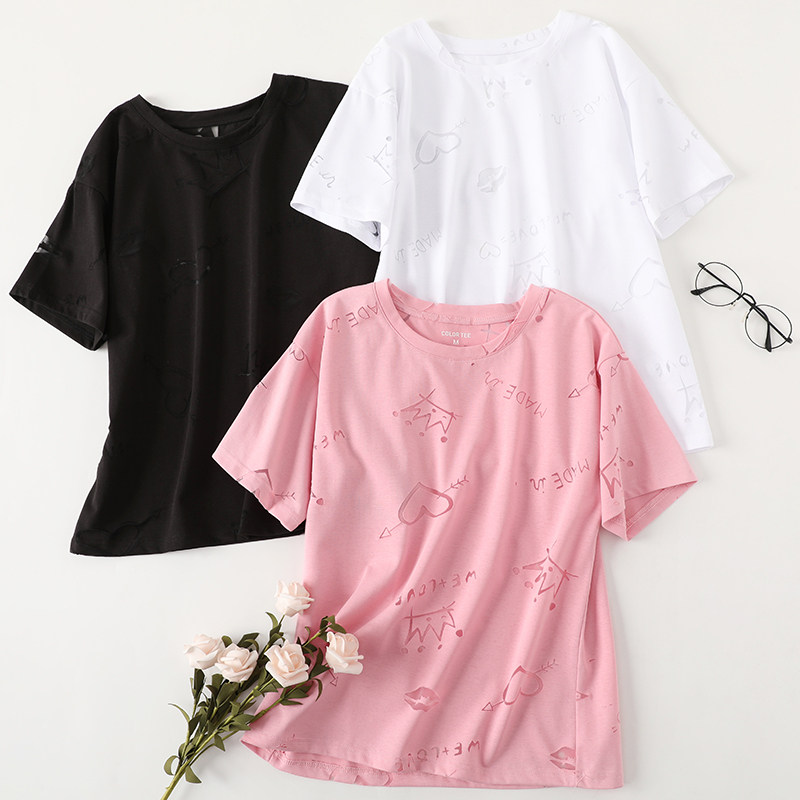 艾米恋 Розовая летняя базовая приятная телу небольшая дизайнерская футболка с круглым воротником, тренд сезона