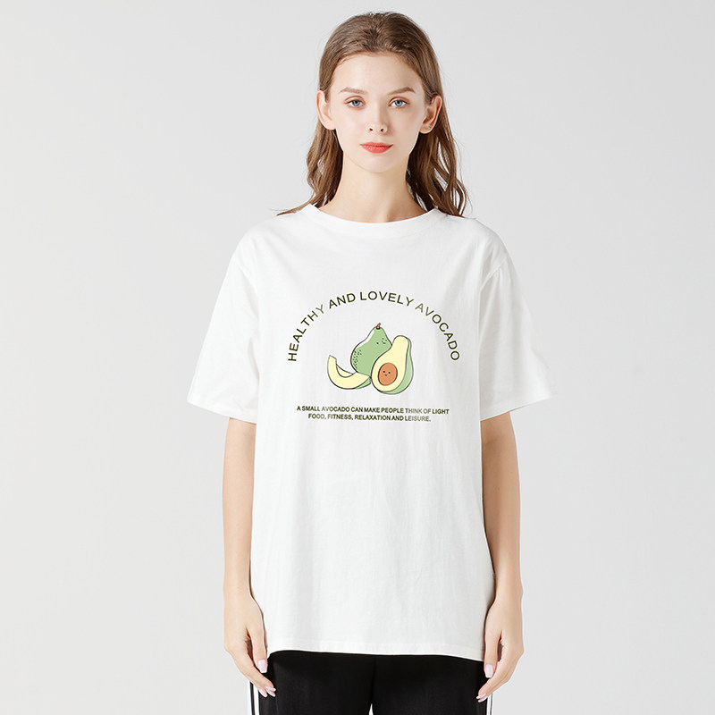 艾米恋 Летняя белая хлопковая длинная футболка с коротким рукавом, 2021 года, средней длины
