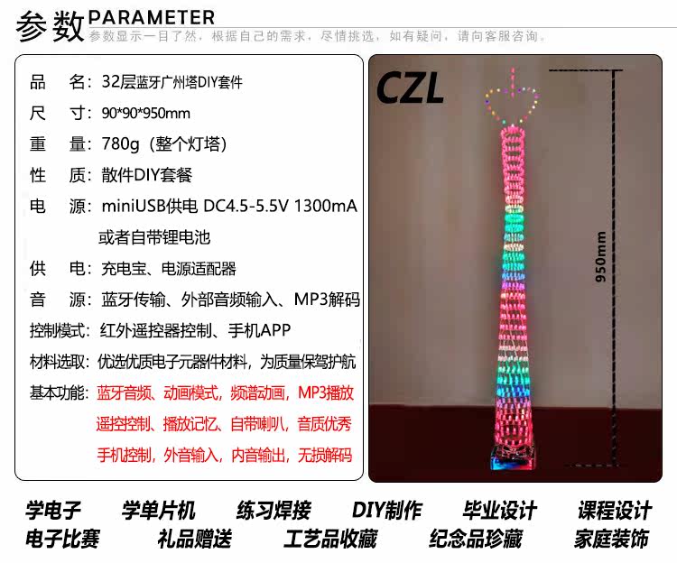 Гуанчжоу башня DIY набор слот 1 метр высотой 32 слои любовных башней Электронная плата сварки и практическая Bluetooth