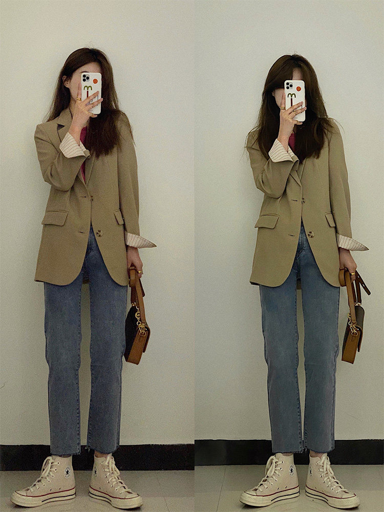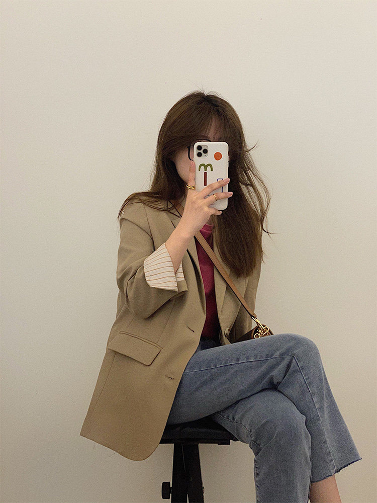 Хаки цветной тонкий дизайнерский осенний пиджак классического кроя, коллекция 2022, изысканный стиль, подходит для подростков, тренд сезона