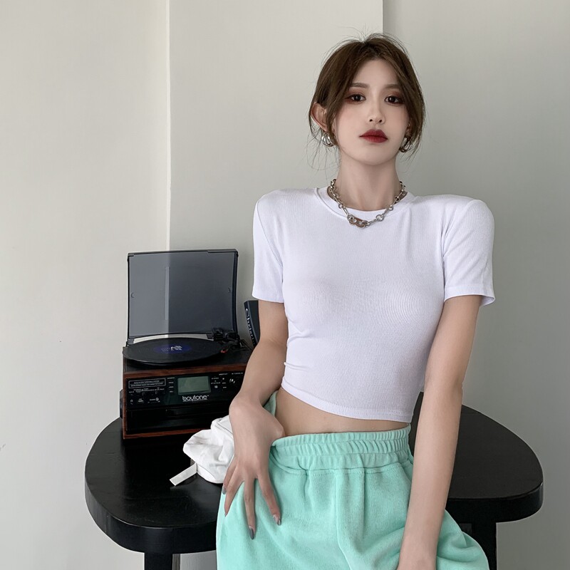 Tide, летняя сексуальная короткая черная футболка, европейский стиль, в обтяжку, облегающий крой, 2021 года, короткий рукав