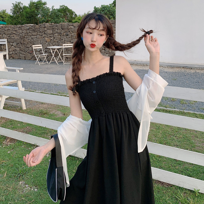 Ретро летнее платье, юбка, длинное платье-комбинация, большой размер, французский ретро стиль, подходит для полных девушек, открытые плечи