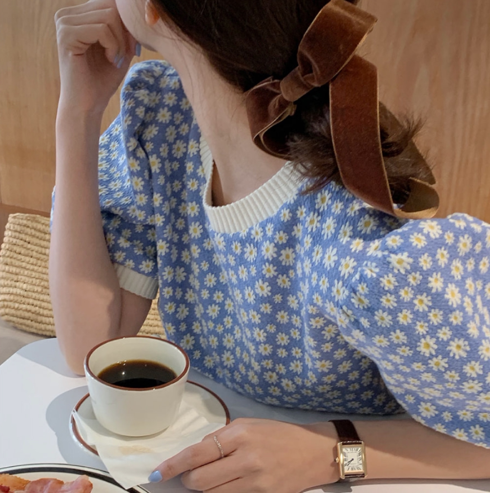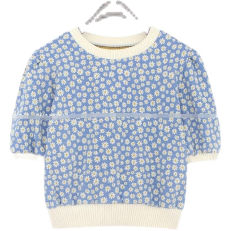 Летний ретро трикотажный свитер в форме цветка, в корейском стиле, в цветочек, короткий рукав