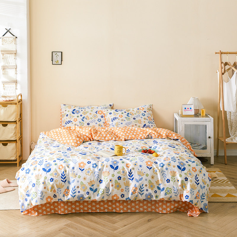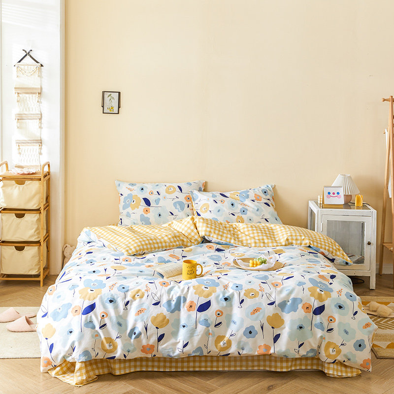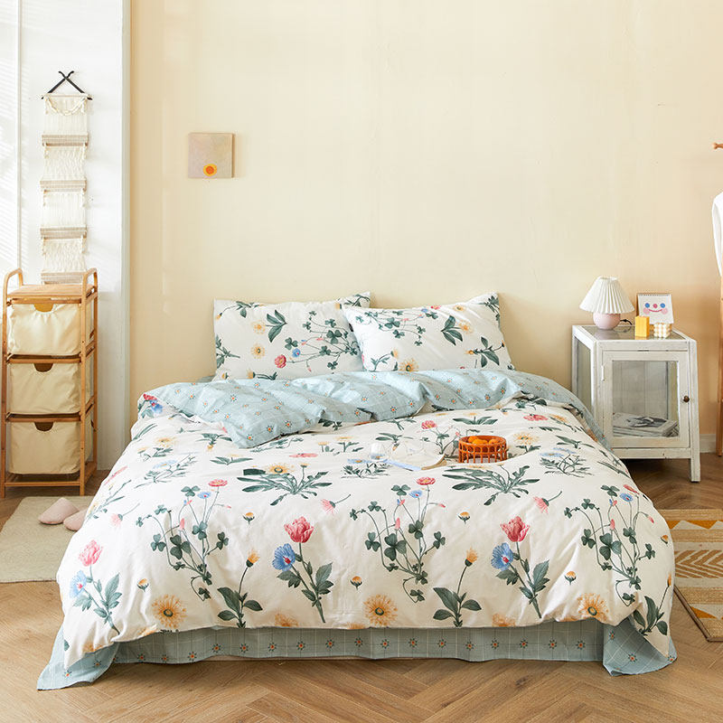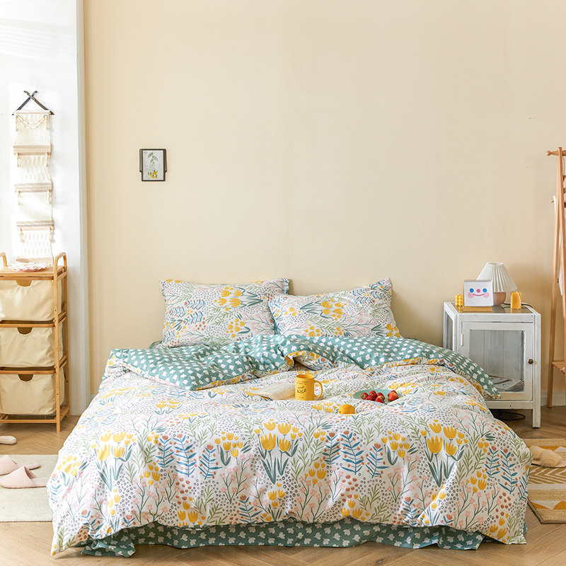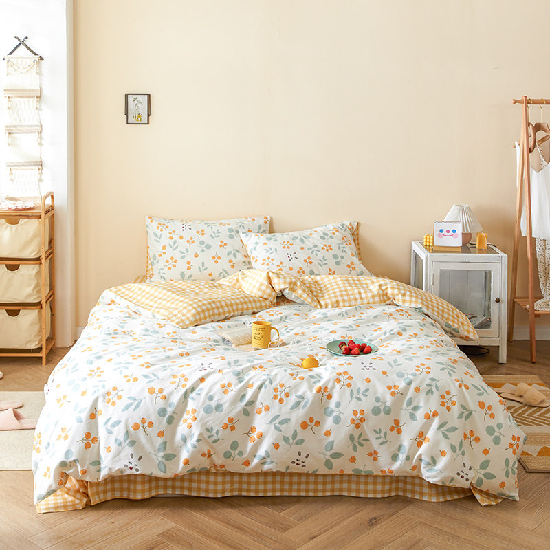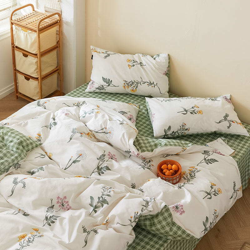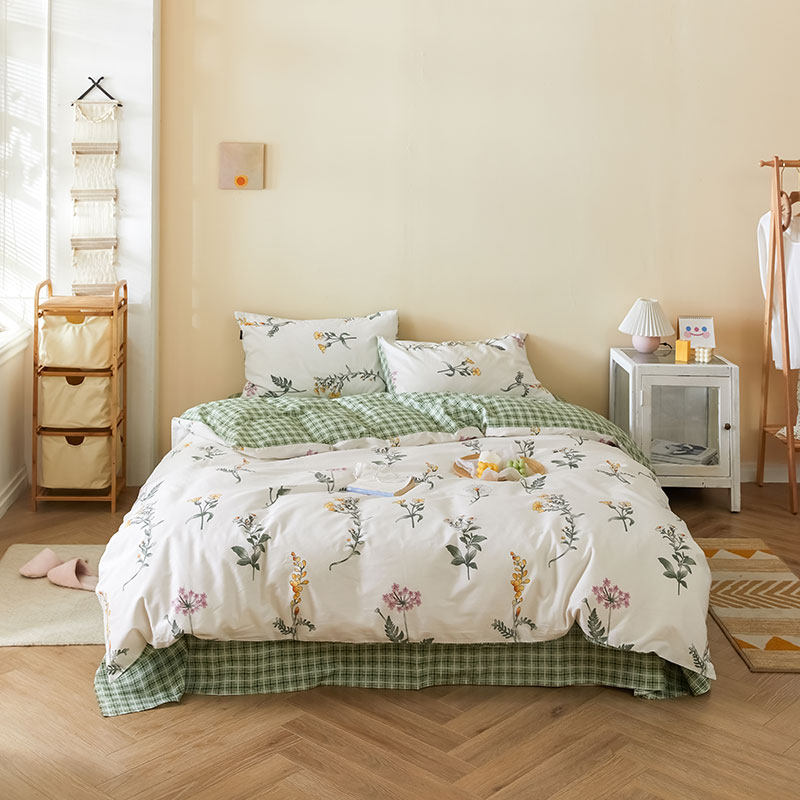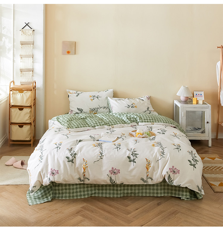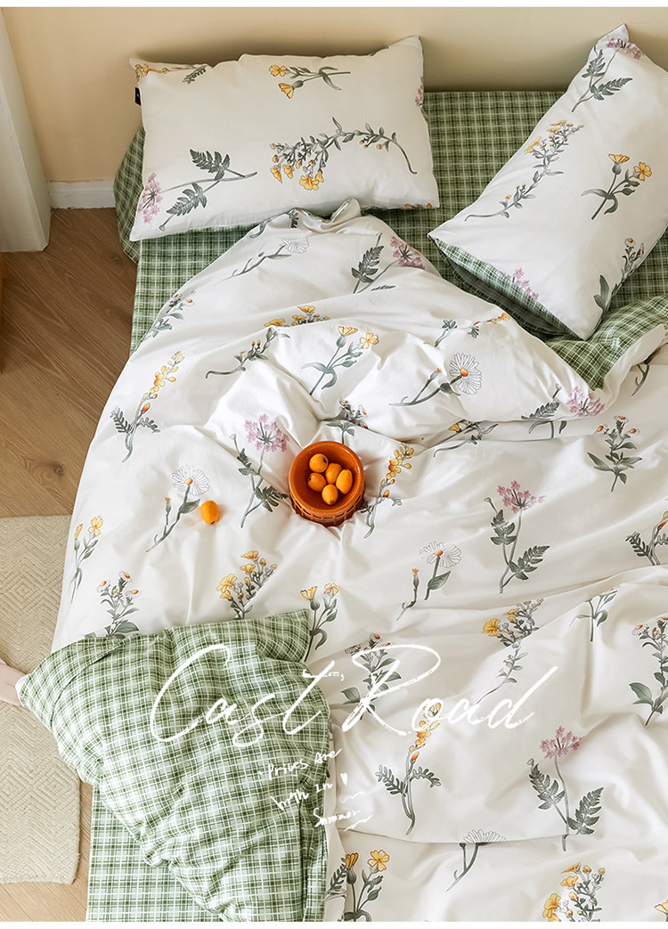Хлопковый свежий комплект, пододеяльник, простыня, покрывало, коллекция 2021, простой и элегантный дизайн, 4 предмета