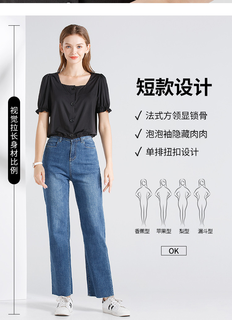 艾米恋 Летняя рубашка, короткая тонкая футболка, 2021 года, квадратный вырез, рукава фонарики, короткий рукав