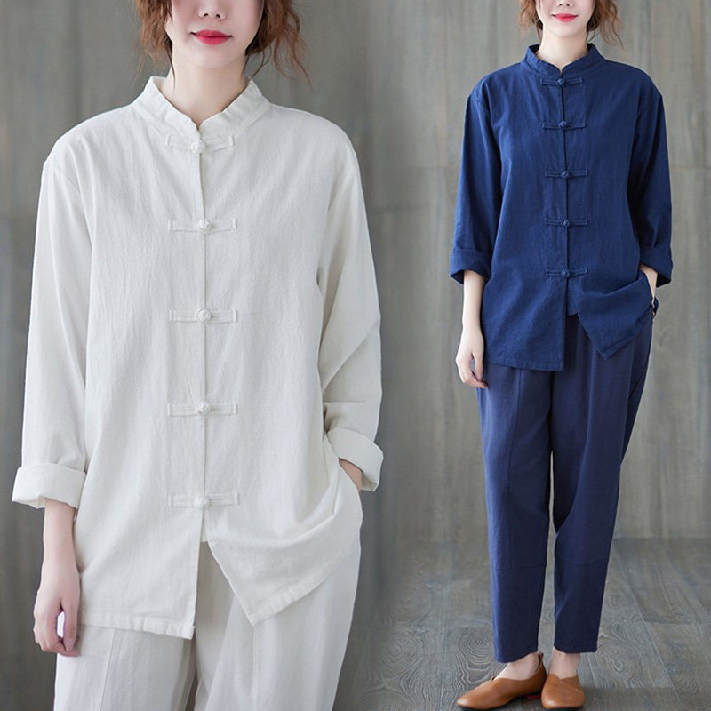 Ретро термобелье, куртка, из хлопка и льна, китайский стиль, оверсайз
