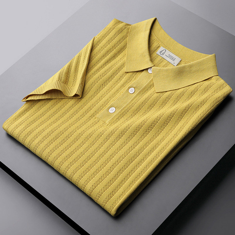 Футболка polo, летняя шелковая рубашка, дышащий тонкий трикотажный элитный свитер, облегающий крой