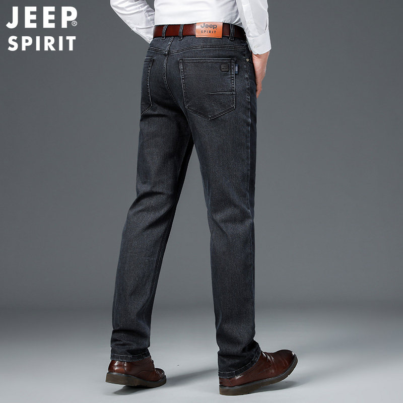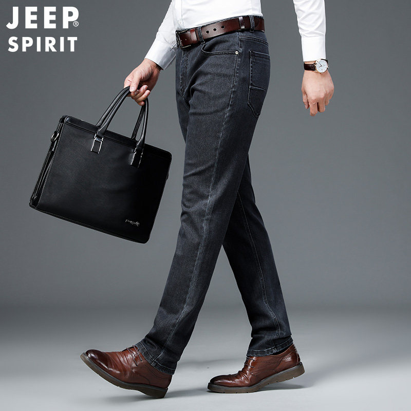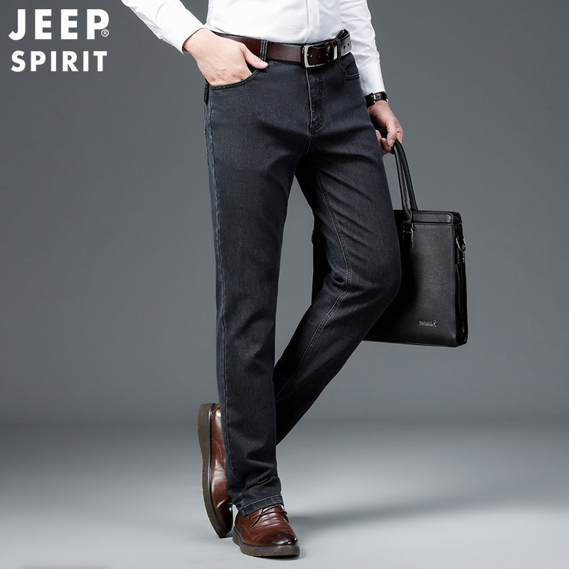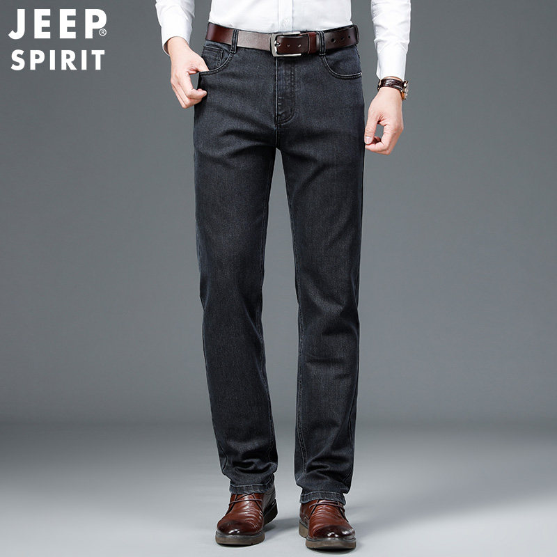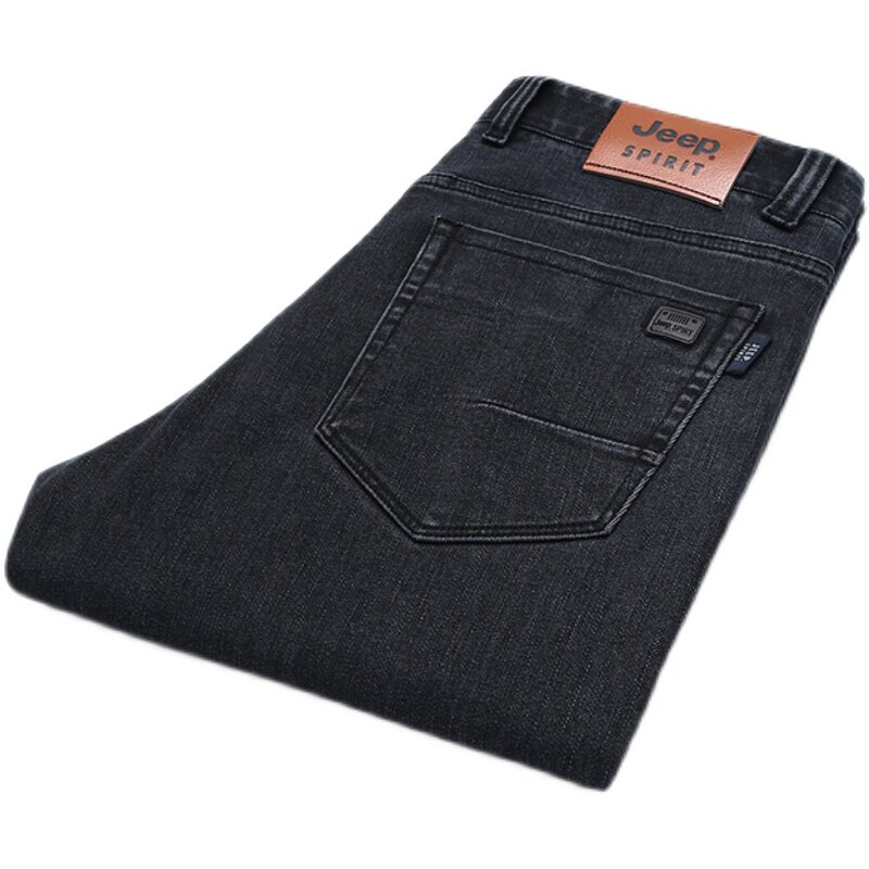 Jeep, джип, джинсы, весенние эластичные черные штаны для отдыха, свободный прямой крой