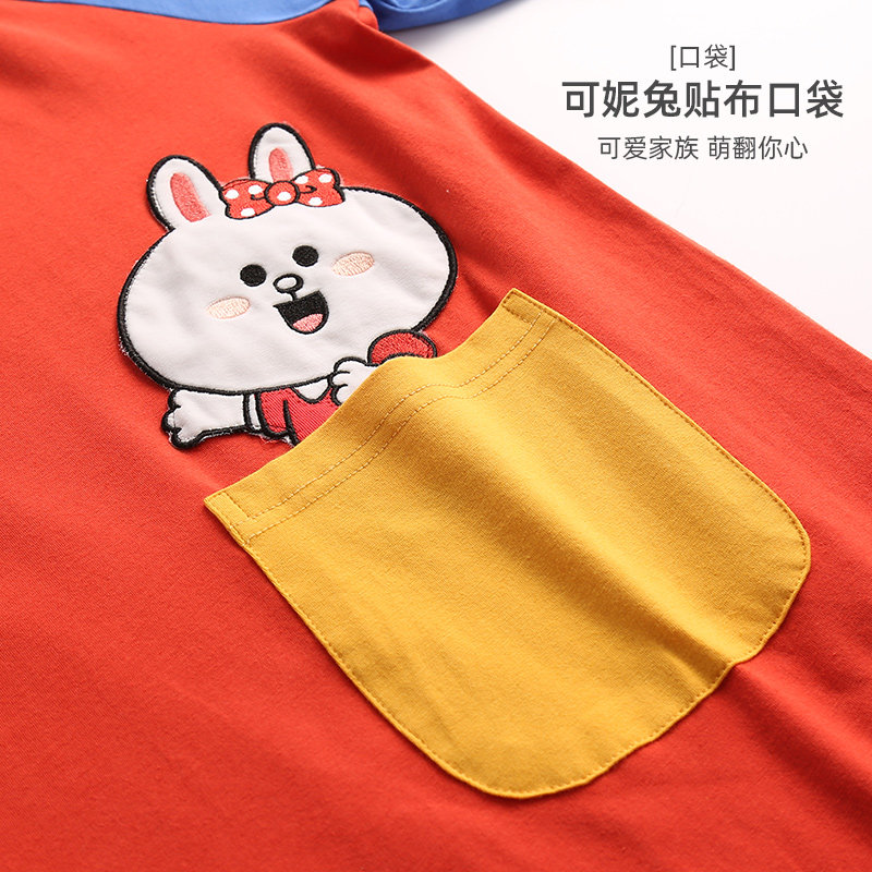 芬腾 Пижама, хлопковая юбка, мультяшное тонкое платье, короткий рукав, свободный крой