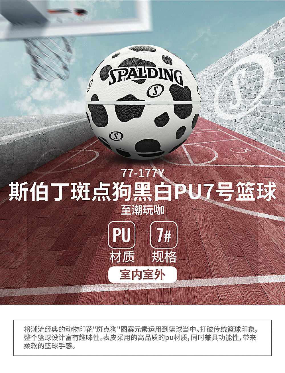 Spalding Sibbing Office Spotted Dog Черно -белый отпечаток PU7 Стандартный баскетбольный крытый и открытый универсальный баскетбол