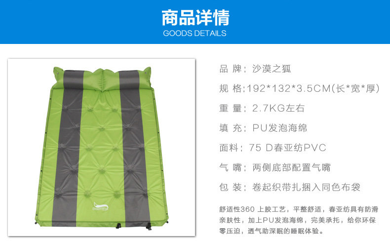 Desert Fox Outdoor Double Automatic надувная подушка может сшивать влажную подушку для подушки для приподров