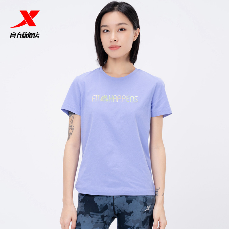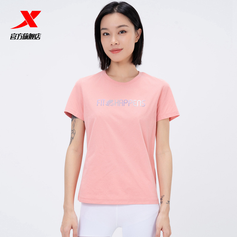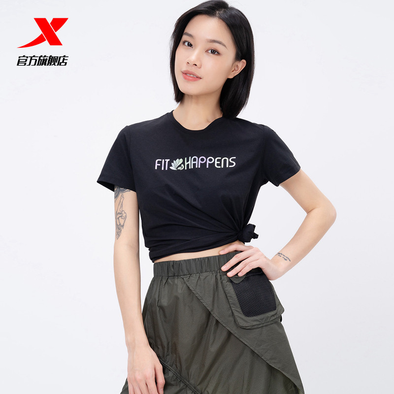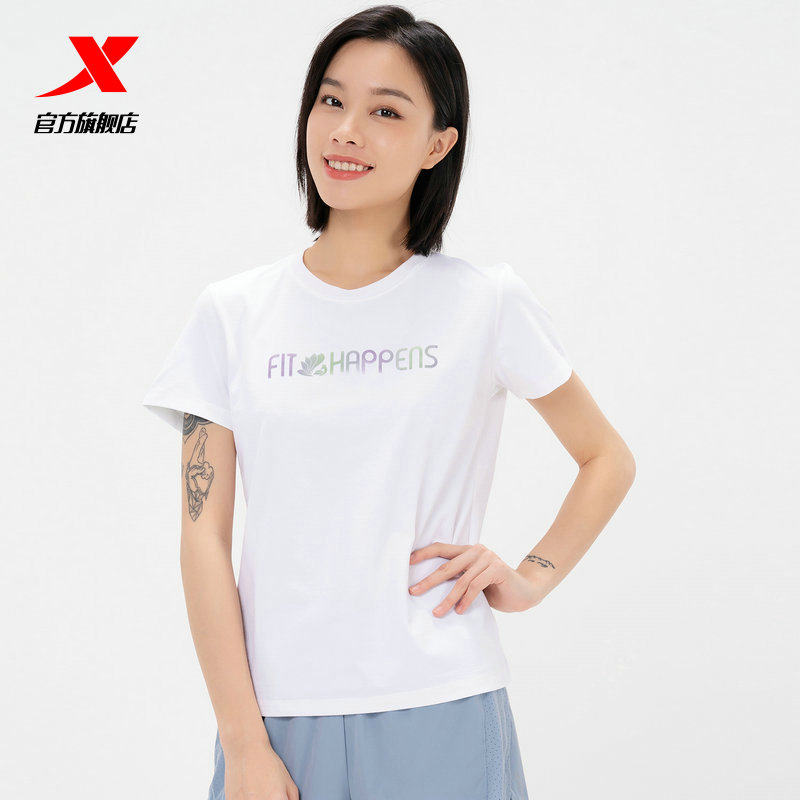 Xtep, быстросохнущая летняя одежда для йоги, спортивная футболка для отдыха, короткий рукав, круглый воротник, для бега