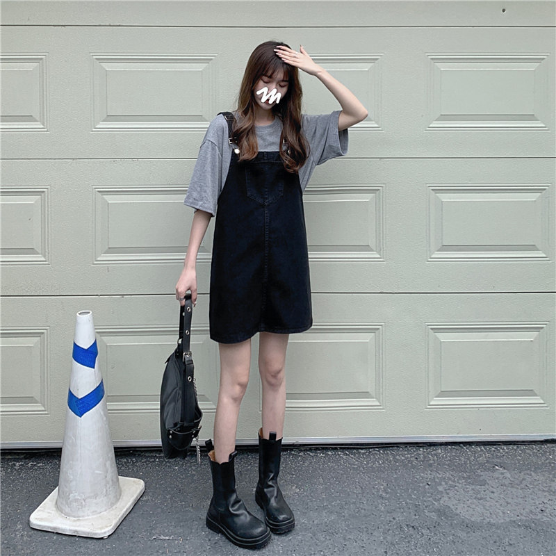 Летнее платье для школьников и студентов, юбка, универсальный джинсовый сарафан, французский стиль