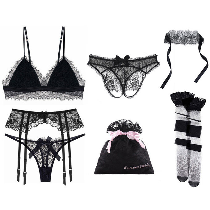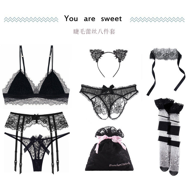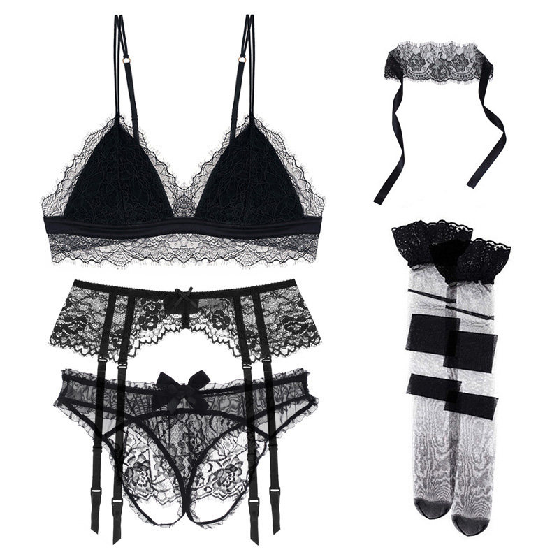 Кружевные сексуальные штаны для ресниц, трусы, повязка для глаз, колготки, черный комплект