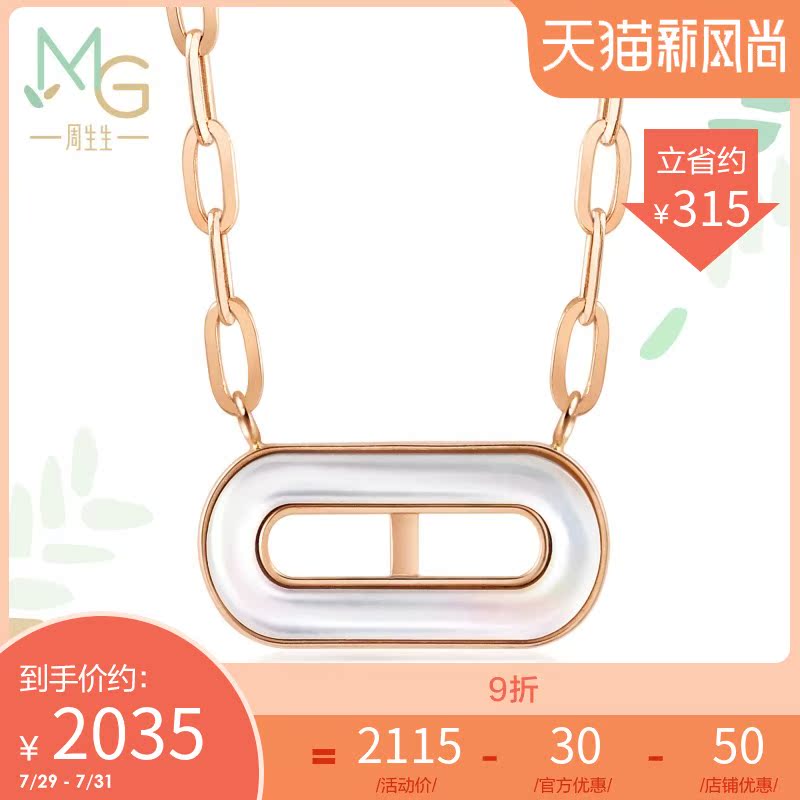 周生生 Золотая мятная капсула с розой в составе, ожерелье, 18 карат