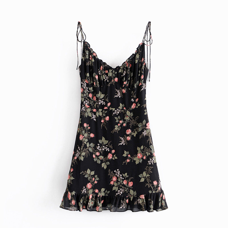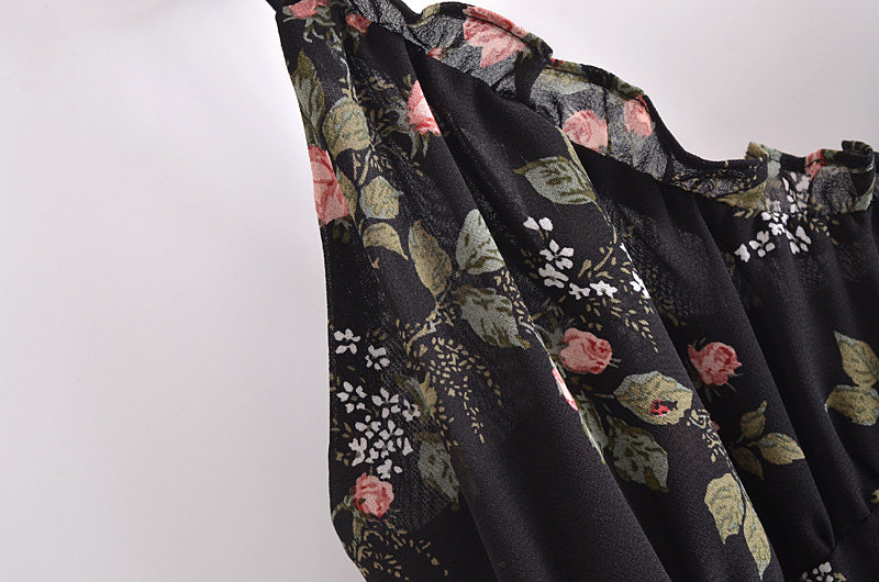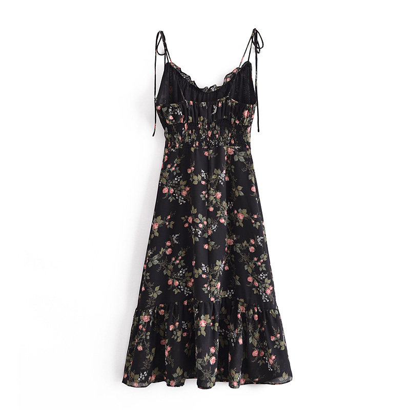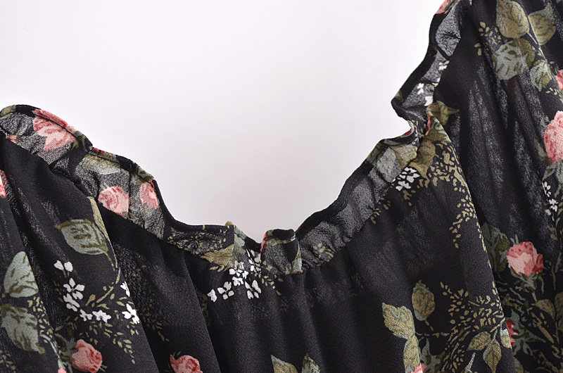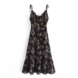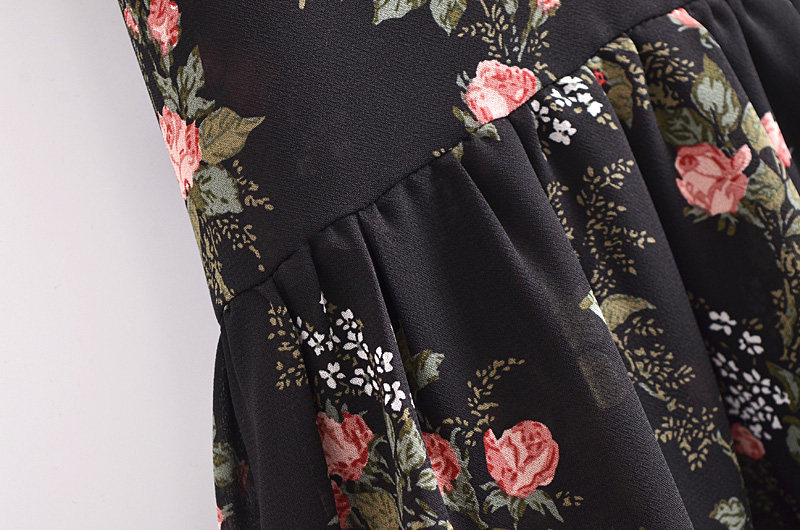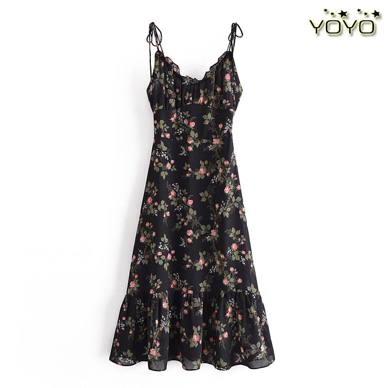 Ретро йо-йо, приталенный корсет, платье, европейский стиль, новая коллекция, французский ретро стиль, цветочный принт, V-образный вырез