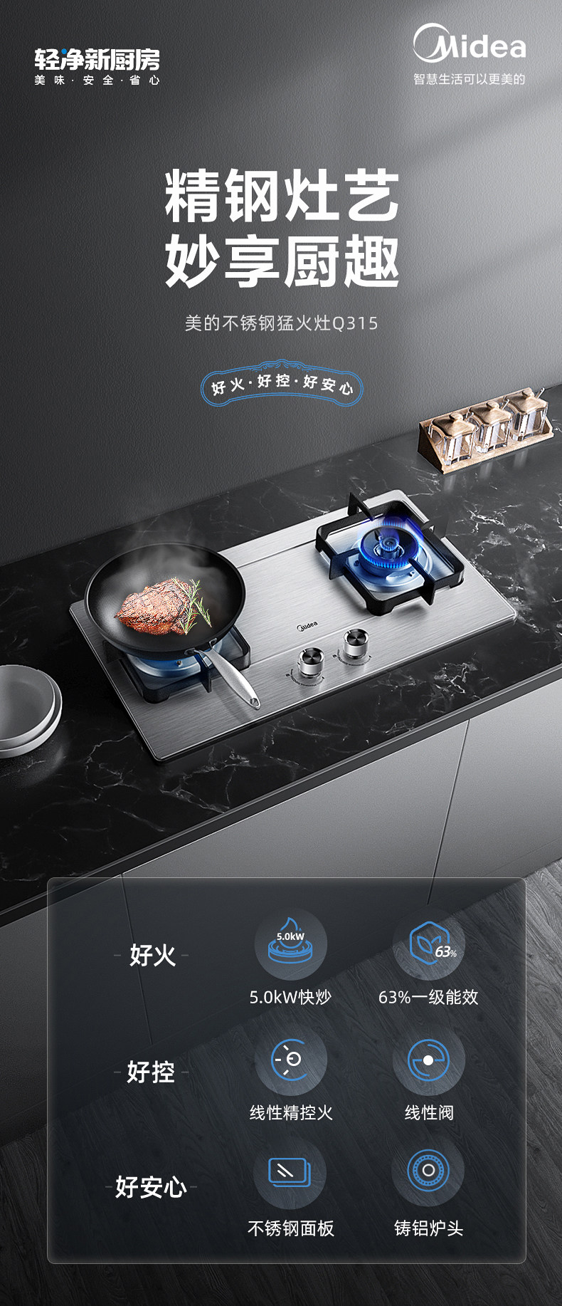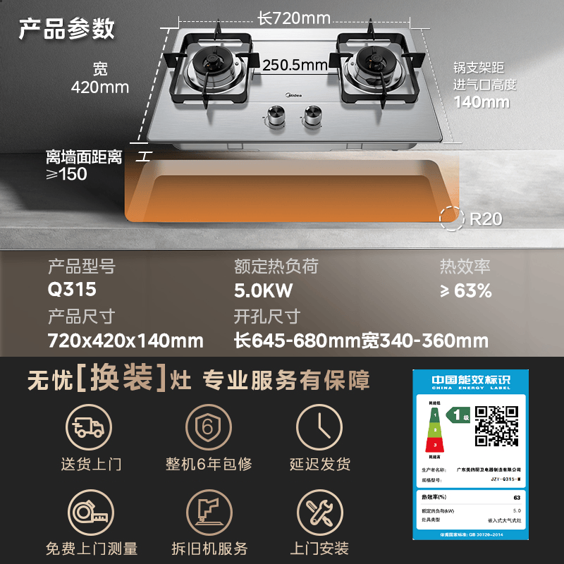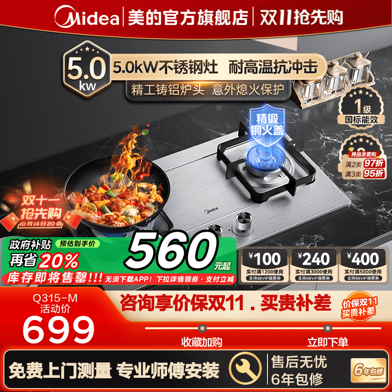 [Ханчжоу заменяется старой] Midea Q315-M Газовая плита с двойной печью домохозяйственная газовая плита.