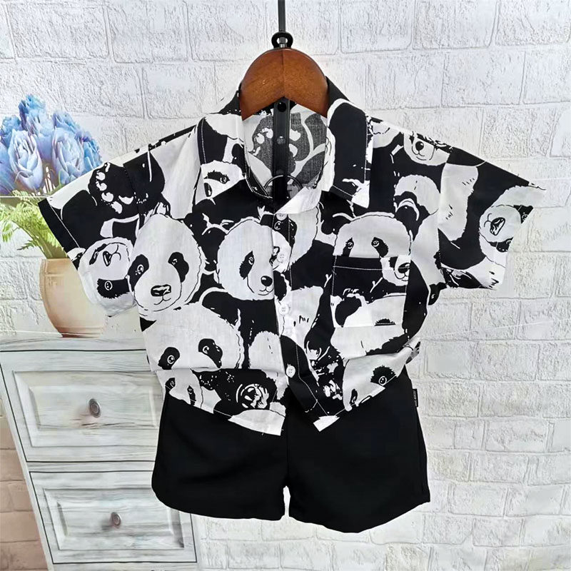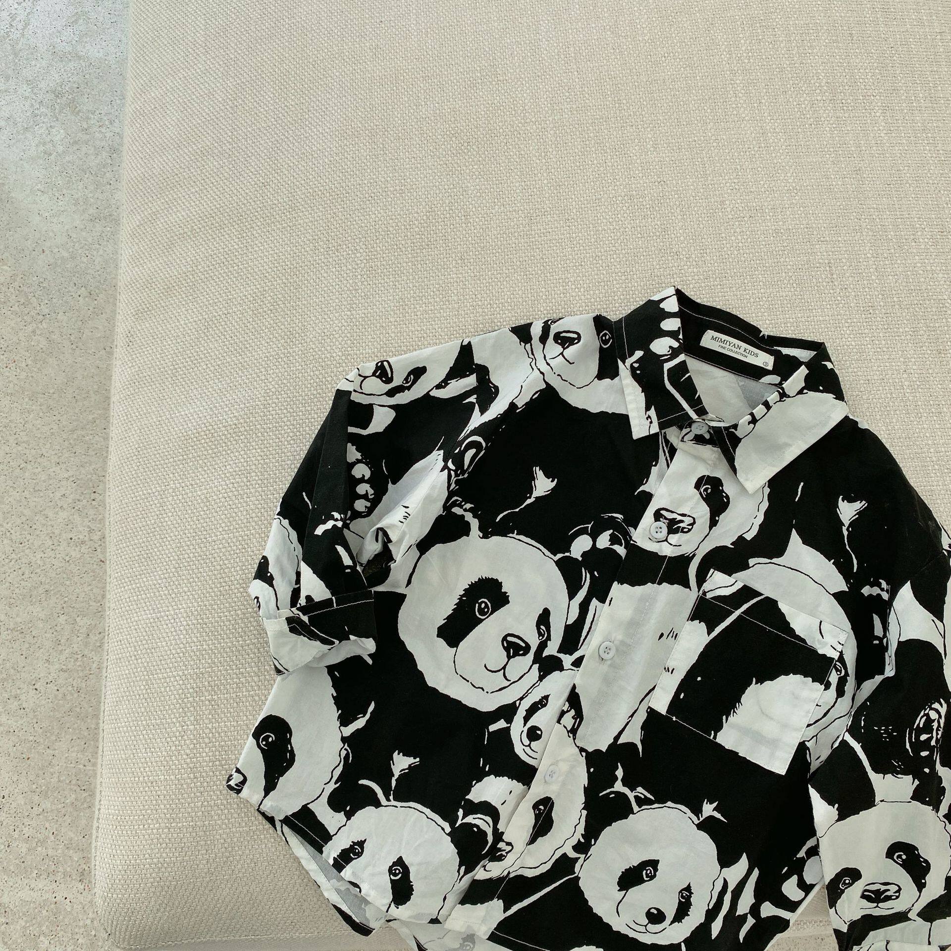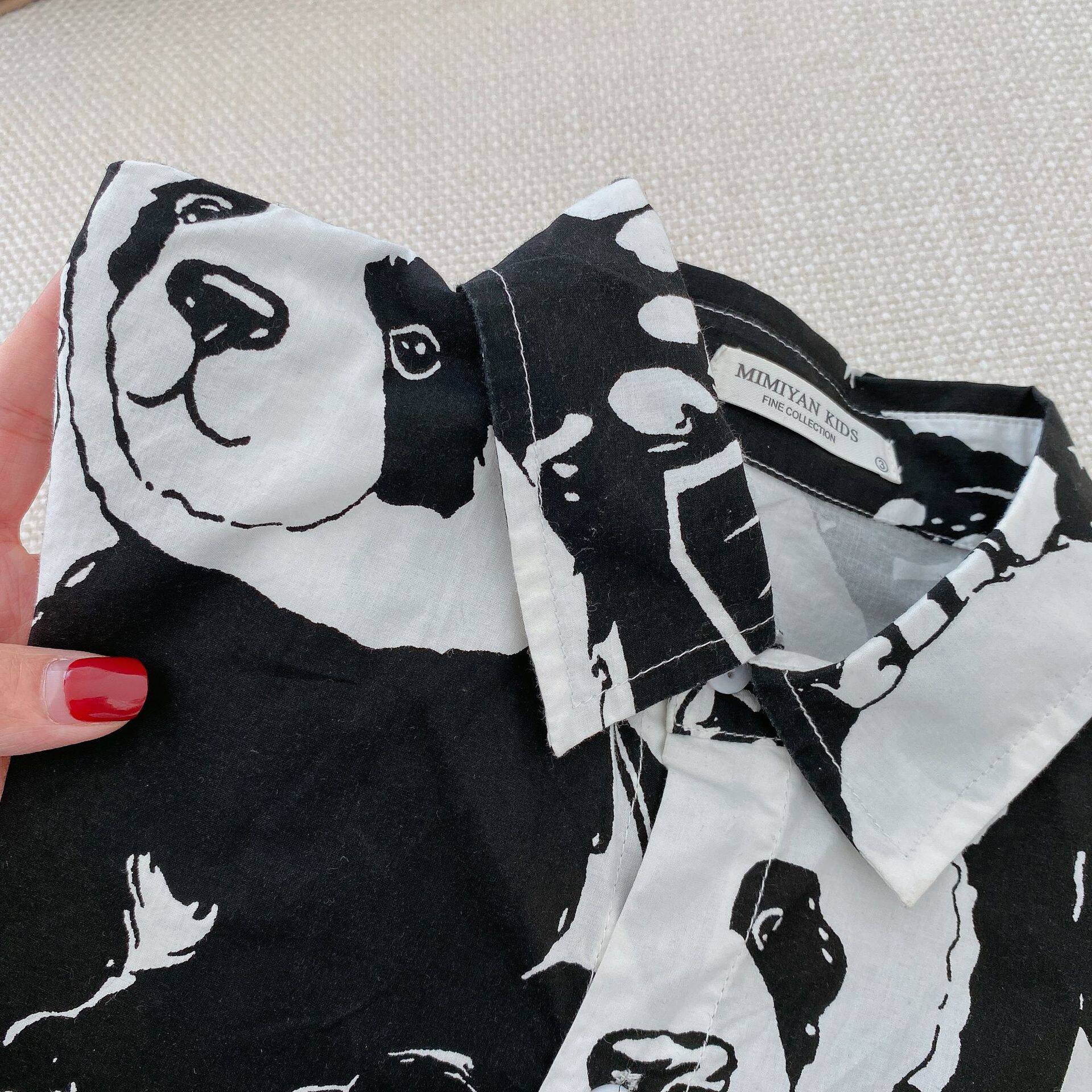 Детская рубашка, мультяшная летняя одежда подходит для мужчин и женщин, короткий рукав, детская одежда, в корейском стиле