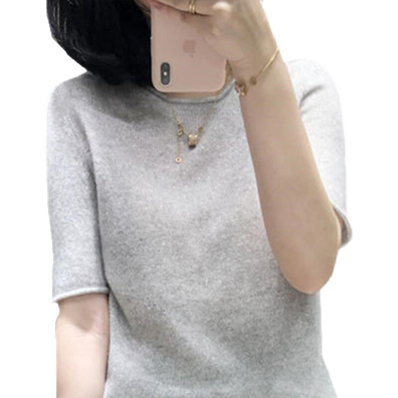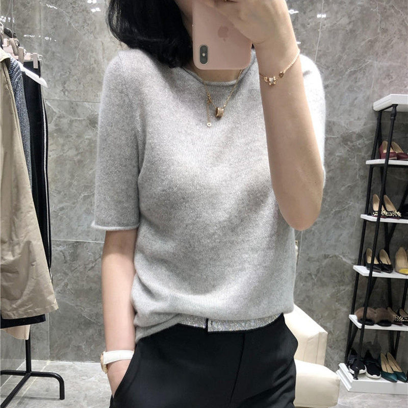 Кашемировый трикотажный короткий шерстяной свитер с круглым воротником, оверсайз