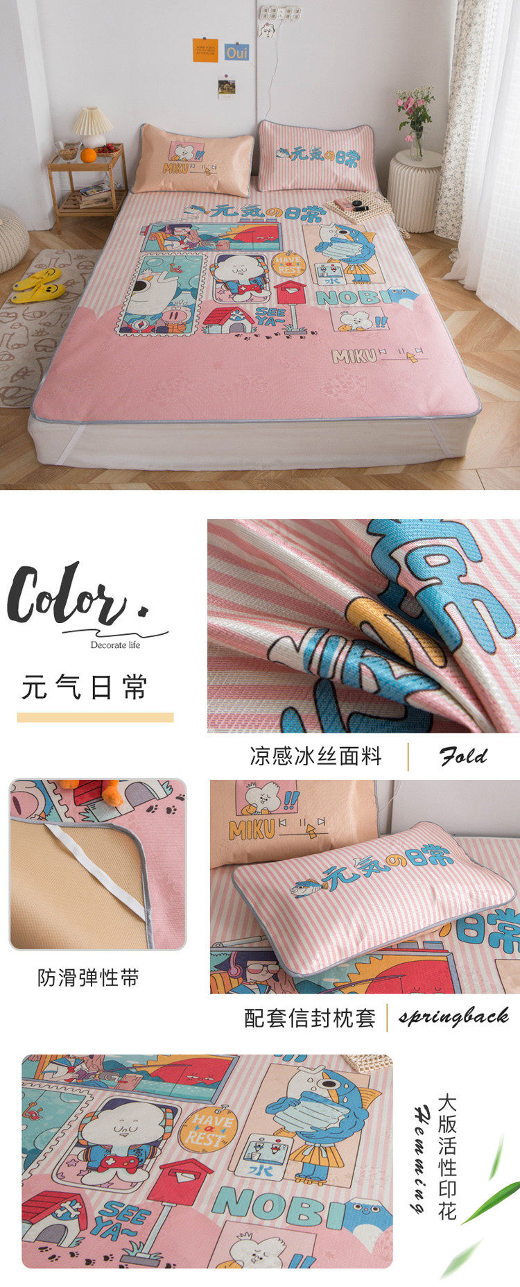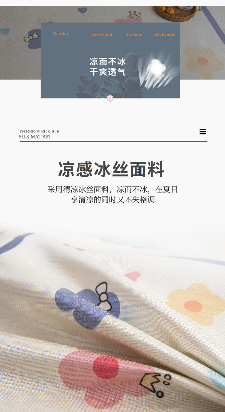 Шелковый коврик, летний комплект для домашнего использования для школьников, 3 предмета, 1.5м, можно стирать