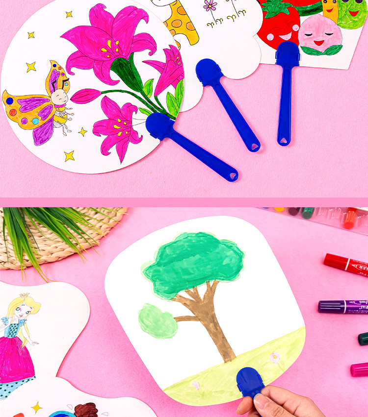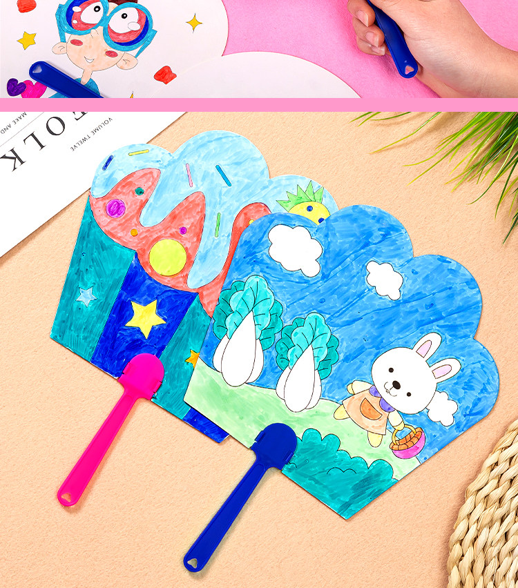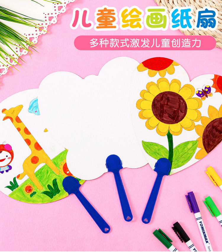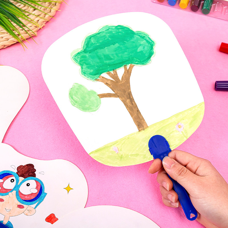 Детский художественный круглый веер для детского сада, DIY, ручная роспись
