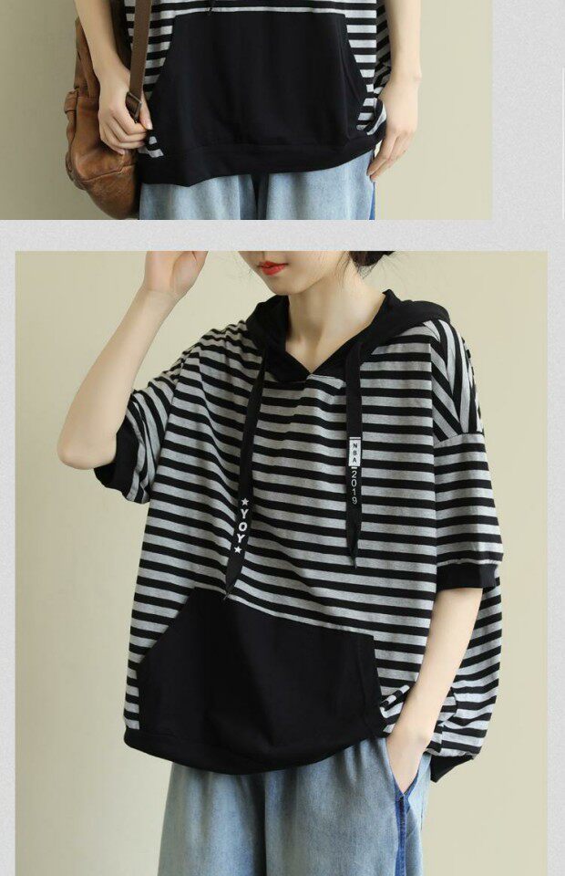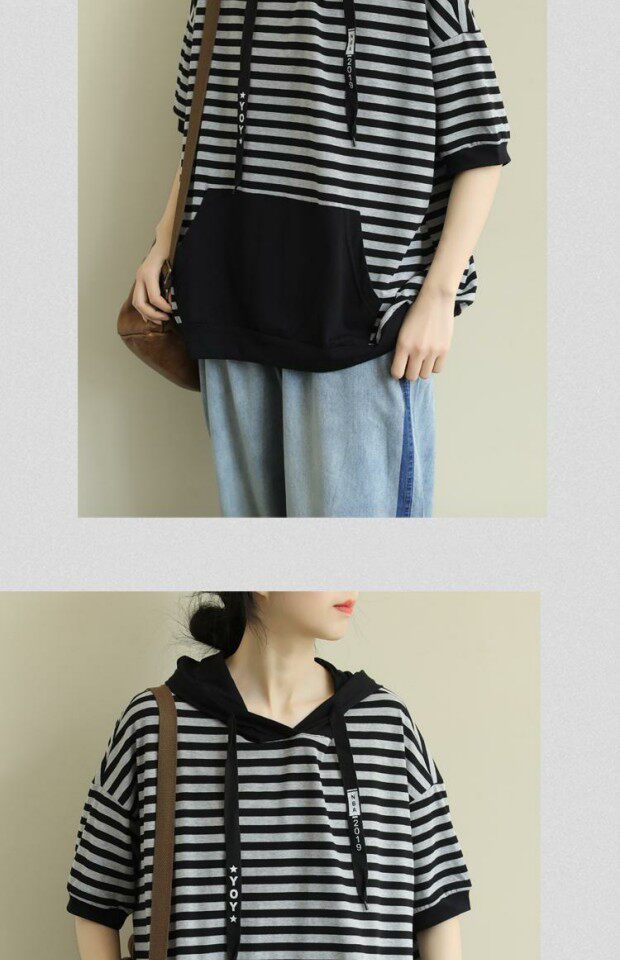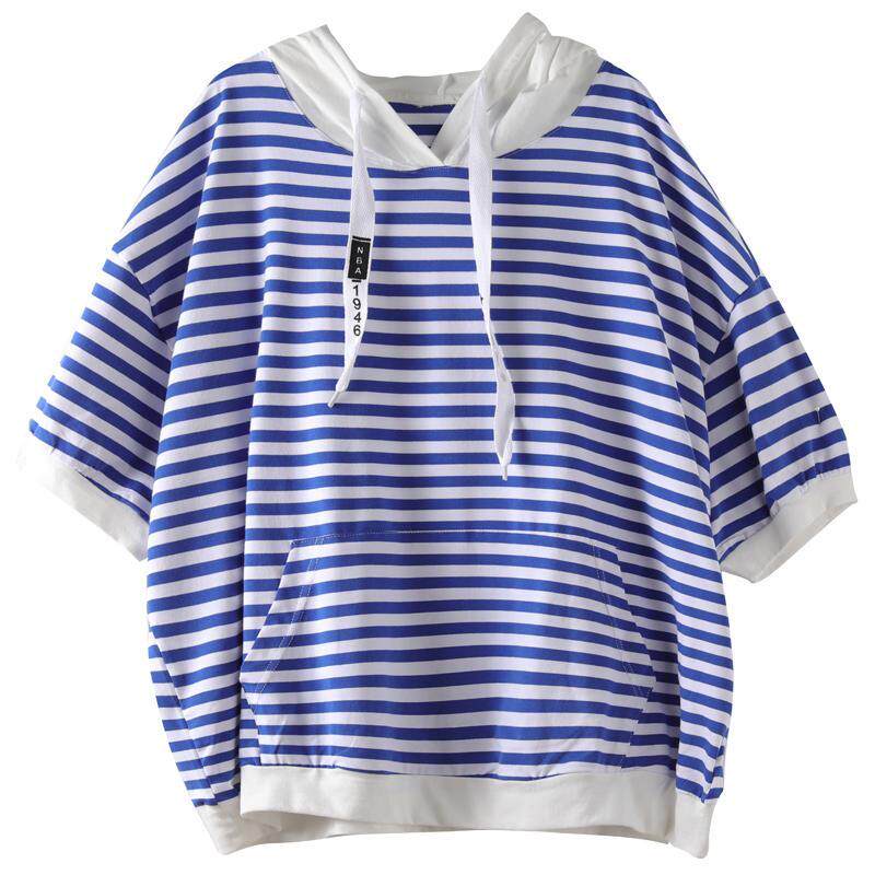 Летняя толстовка с капюшоном, хлопковая футболка, короткий рукав, большой размер, на шнурках