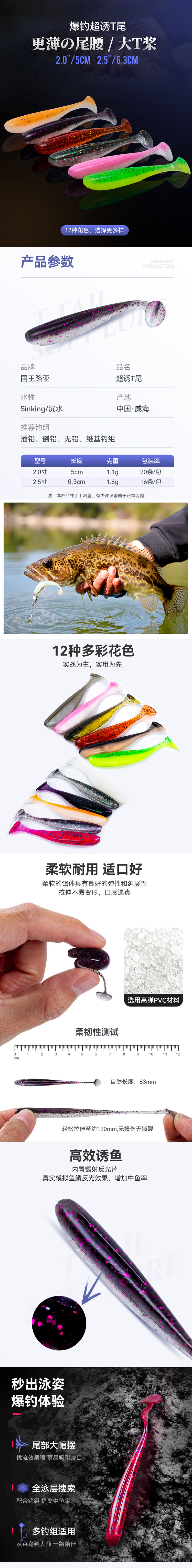 国王路亚 Мягкая приманка хвост, мягкий червь, соль, высокая доля пуллеров, коврик для бас -краски цвета цветовой дорогой субэти