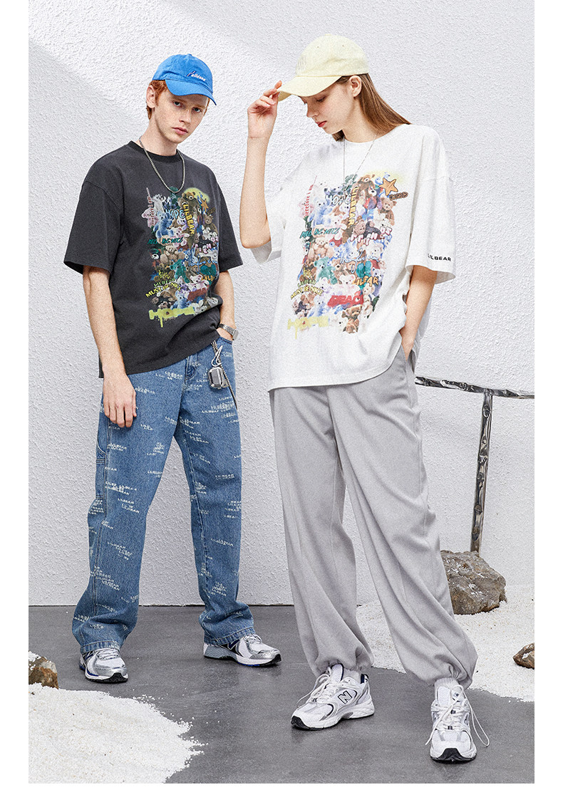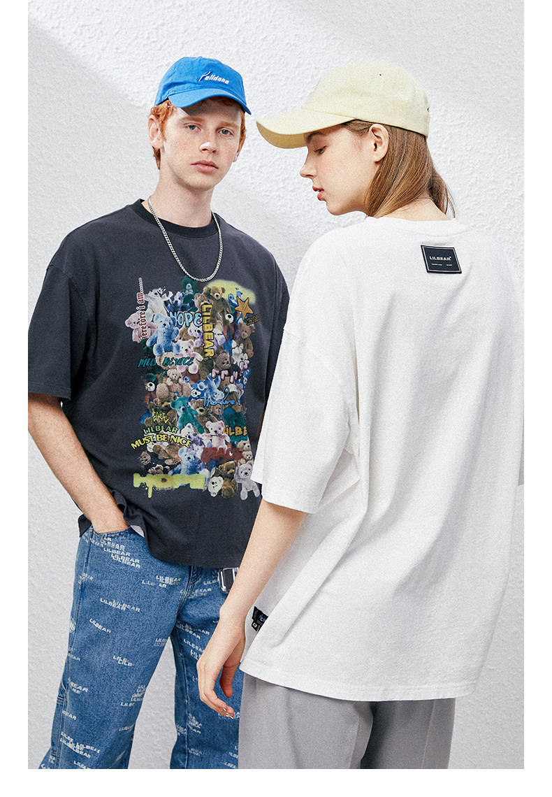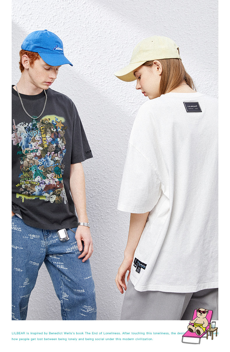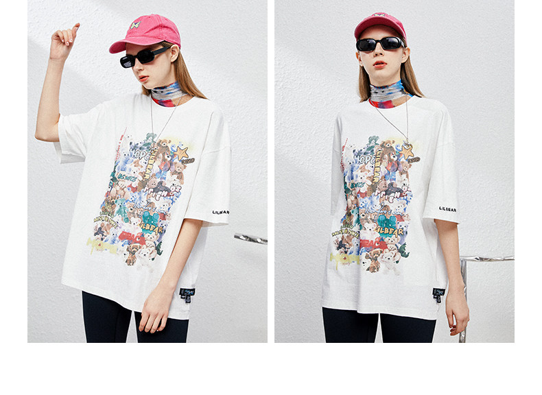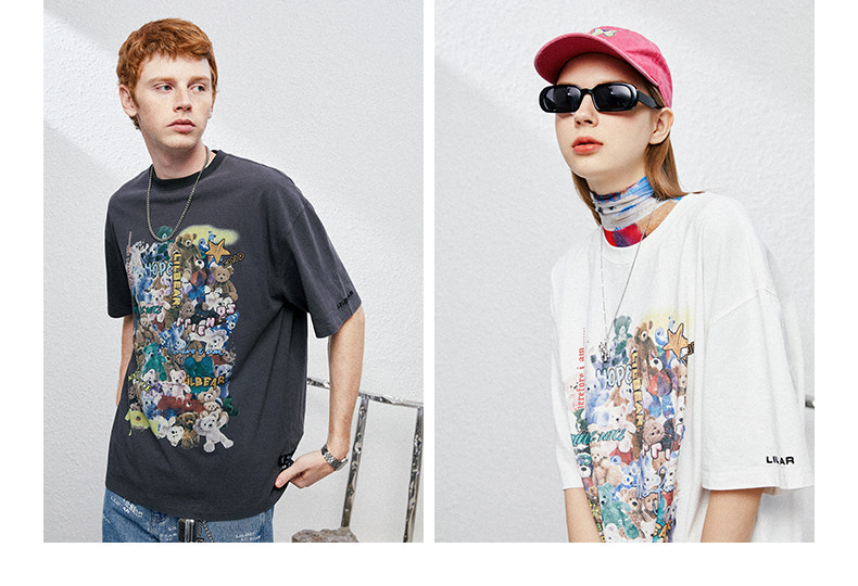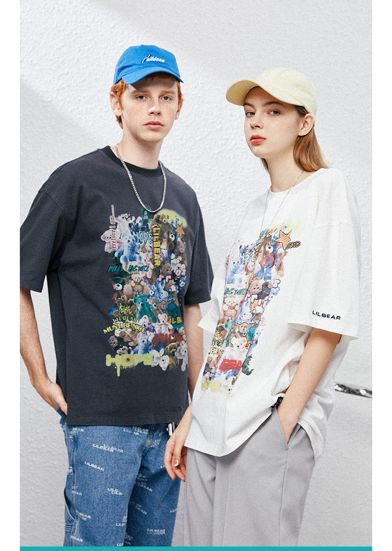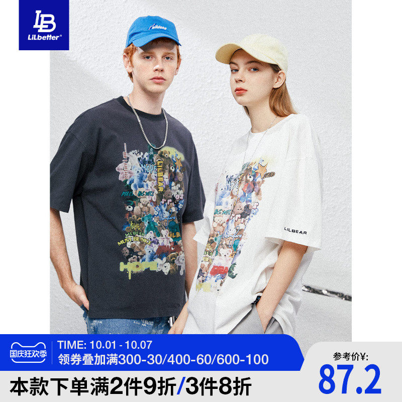 Lilbetter Хлопковая футболка с круглым воротником в стиле хип-хоп для влюбленных, с медвежатами, оверсайз, короткий рукав