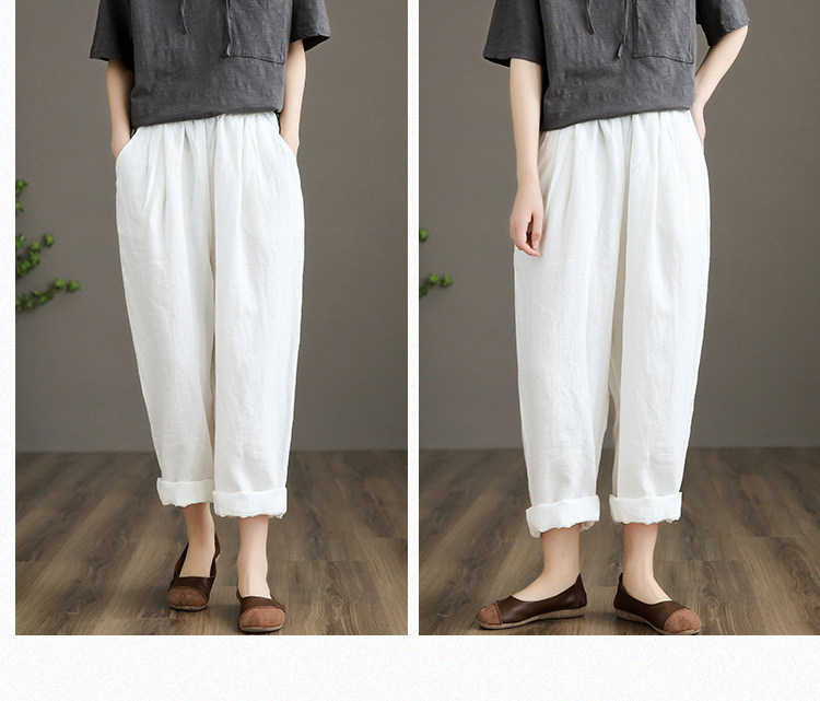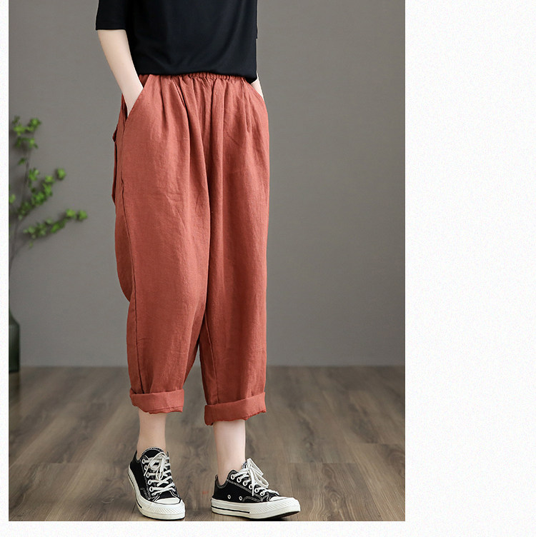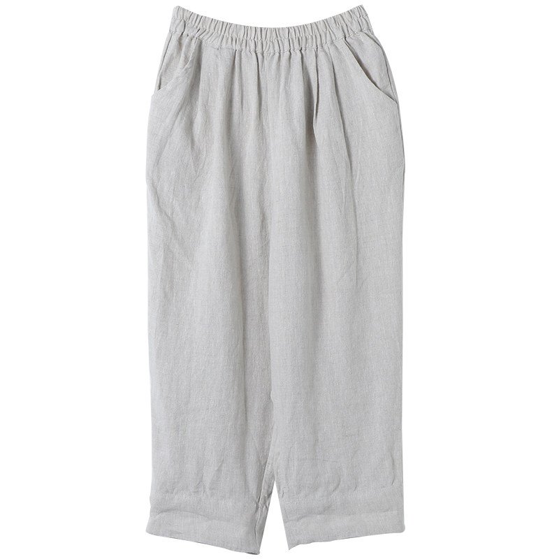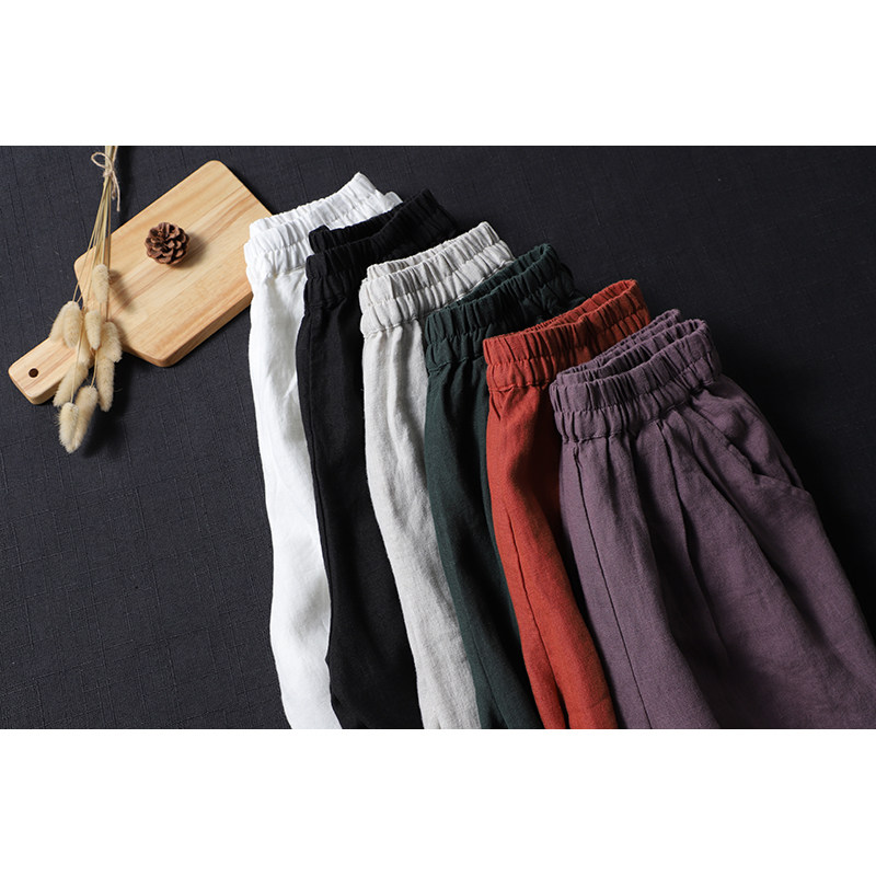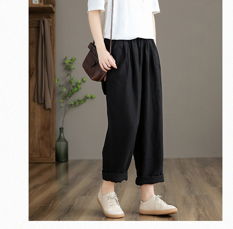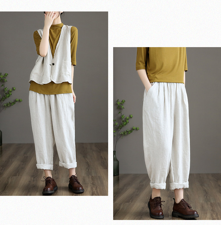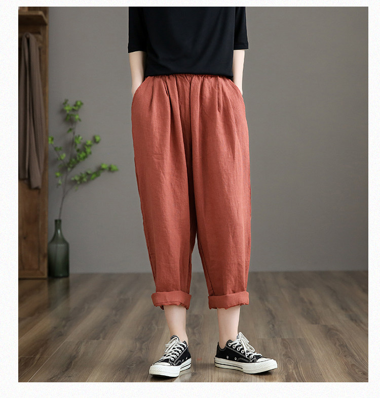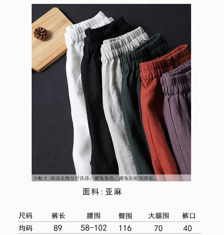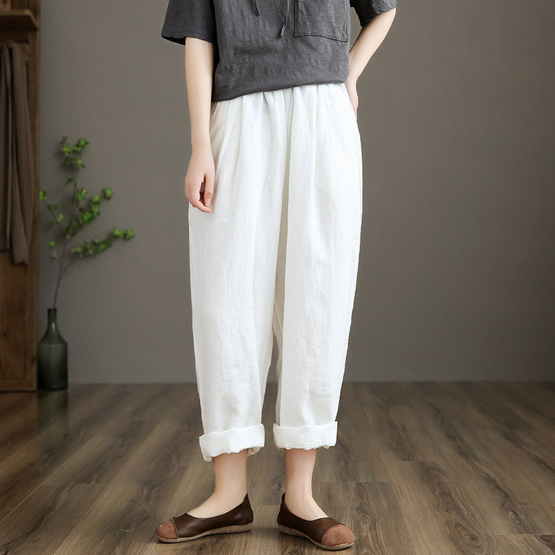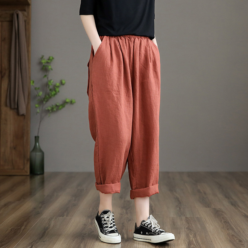 Приталенные весенние штаны, высокая талия, из хлопка и льна, свободный прямой крой