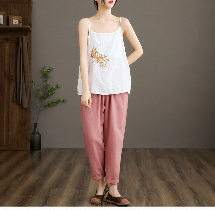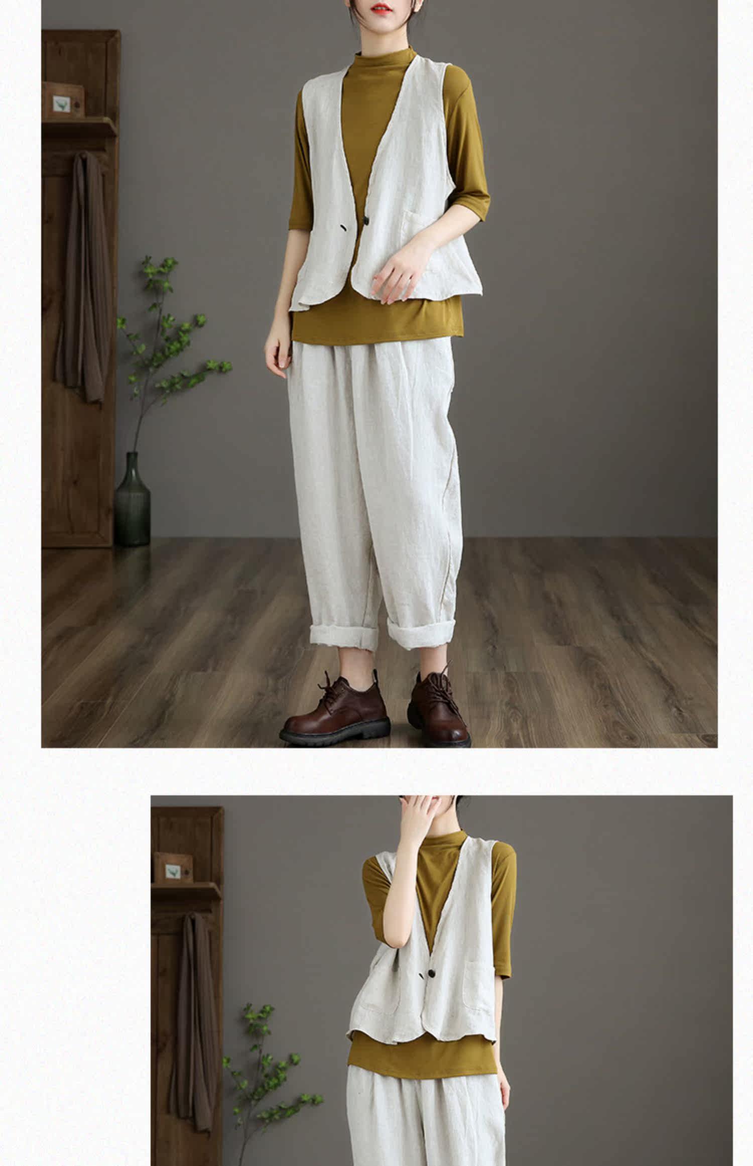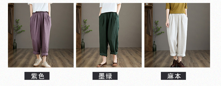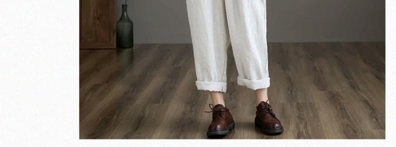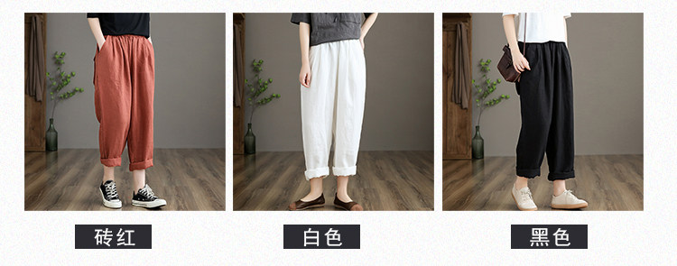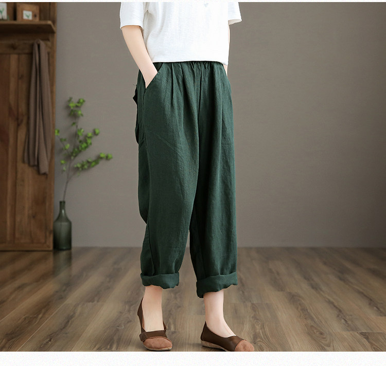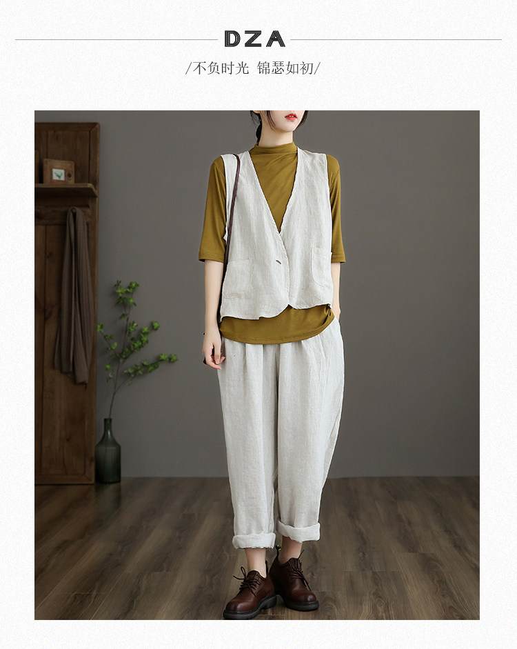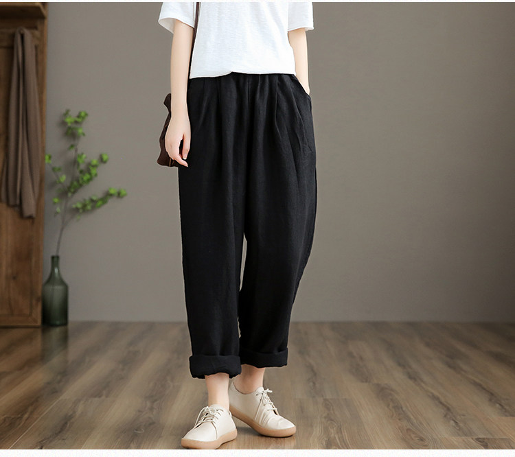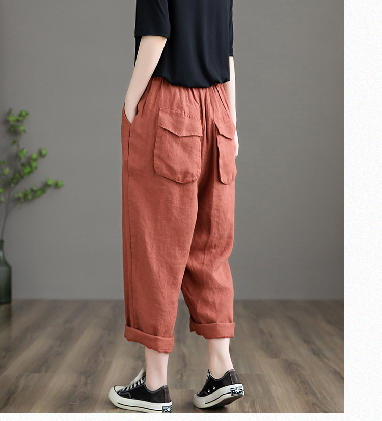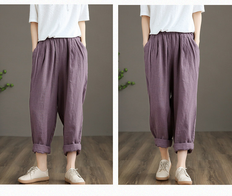 Приталенные весенние штаны, высокая талия, из хлопка и льна, свободный прямой крой