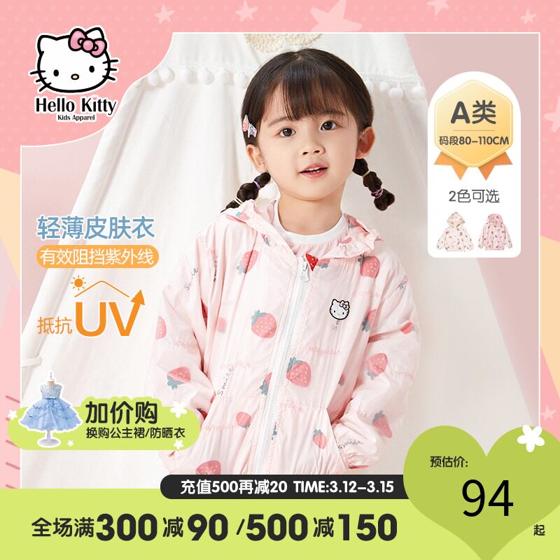 Hello Kitty, летняя дышащая ветровка с капюшоном, детская одежда, защита от солнца
