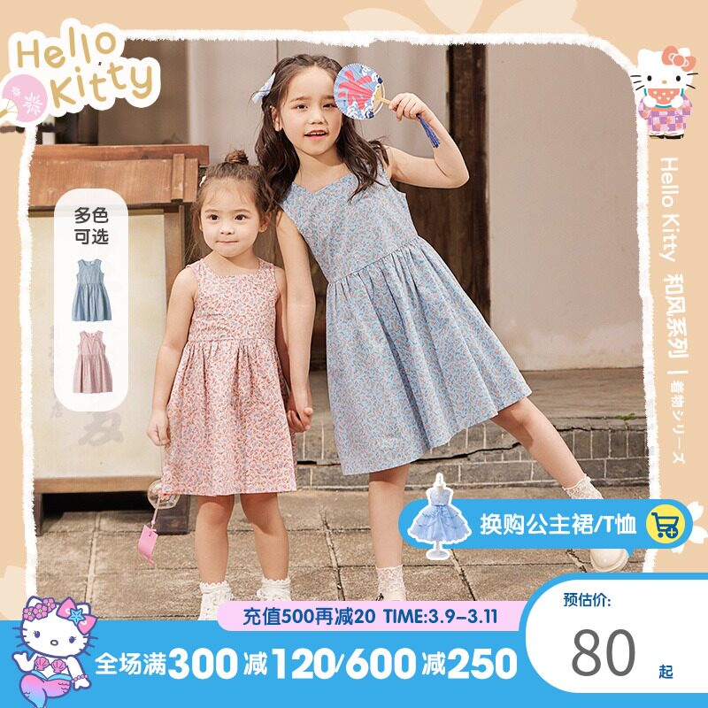 Hello Kitty, летнее платье без рукавов для отдыха, детская одежда, подходит для подростков, цветочный принт